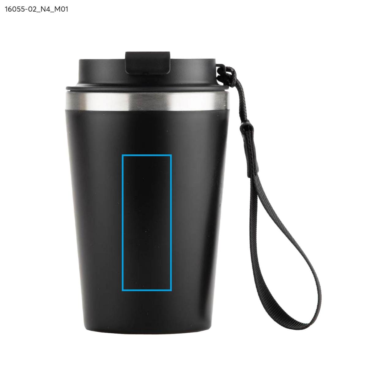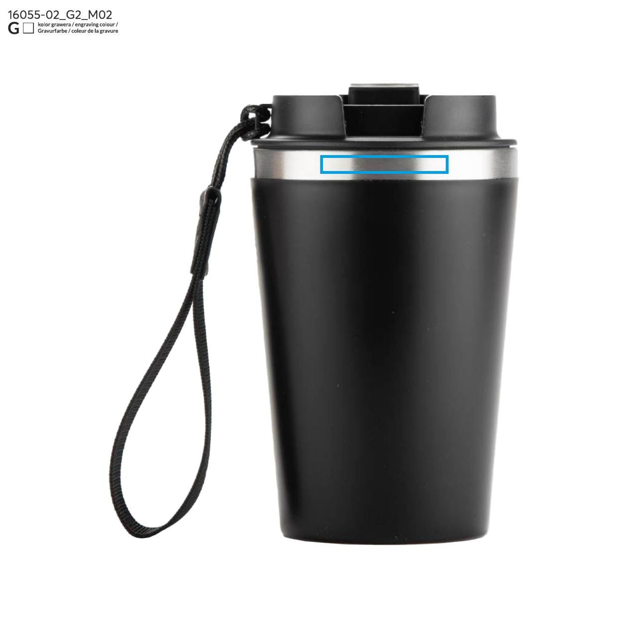 Kubek termiczny SORSO o pojemności 350 ml to praktyczny model zaprojektowany do picia kawy w biegu. Wyposażony w pokrywkę typu flip-top z klapką otwieraną od góry i mechanizmem „podnieś”, umożliwia wygodne korzystanie jedną ręką. Podwójne ścianki pomagają utrzymać temperaturę napoju do 2 godzin, a dołączony uchwyt w formie smyczy ułatwia przenoszenie. Prosta forma i matowe wykończenie sprawiają, że kubek dobrze sprawdza się w codziennym użytkowaniu.