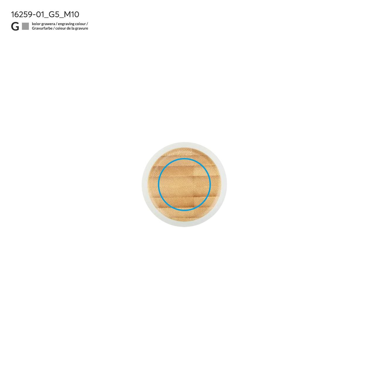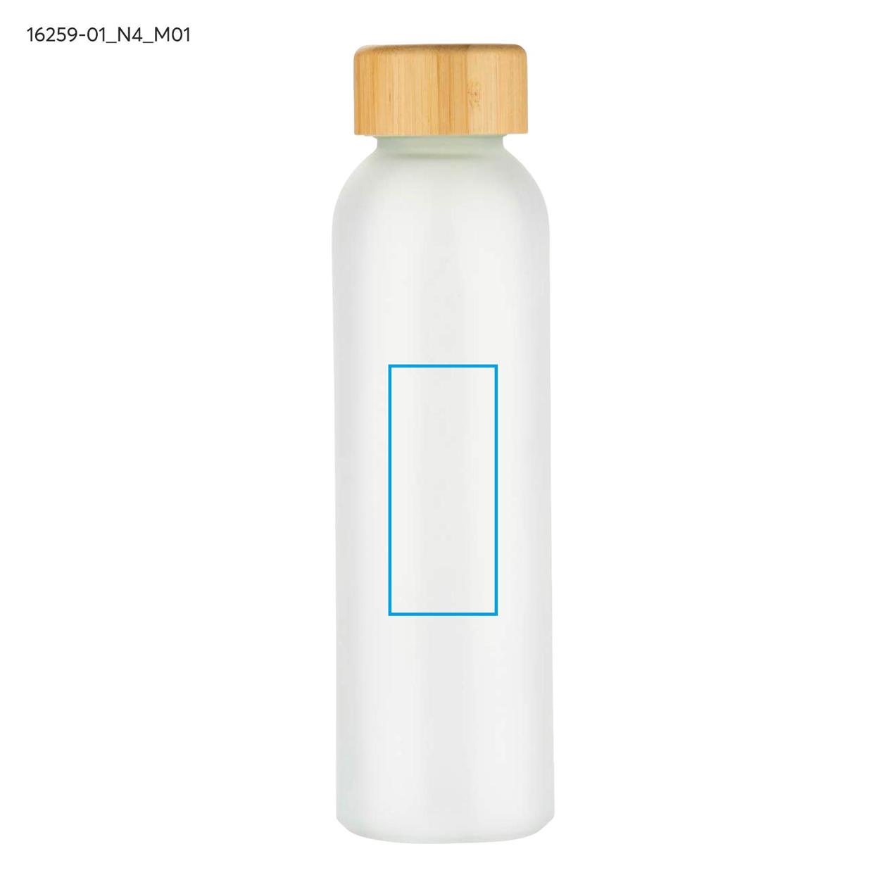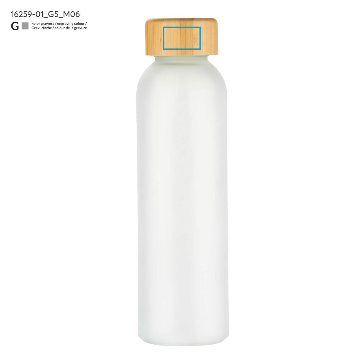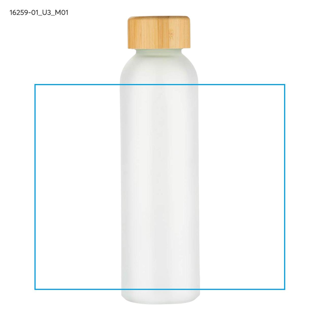 Butelka NILLO o pojemności 500 ml została wykonana z matowego szkła pochodzącego z recyklingu. Jej półprzezroczysta powierzchnia i bambusowa zakrętka nadają całości nowoczesny, stonowany wygląd. Klasyczna, gwintowana zakrętka zapewnia szczelne zamknięcie, a prosta forma sprawia, że butelka jest wygodna w codziennym użytkowaniu. Doskonale sprawdzi się do przechowywania wody, soków lub naparów. To elegancki gadżet wielokrotnego użytku z możliwością znakowania.