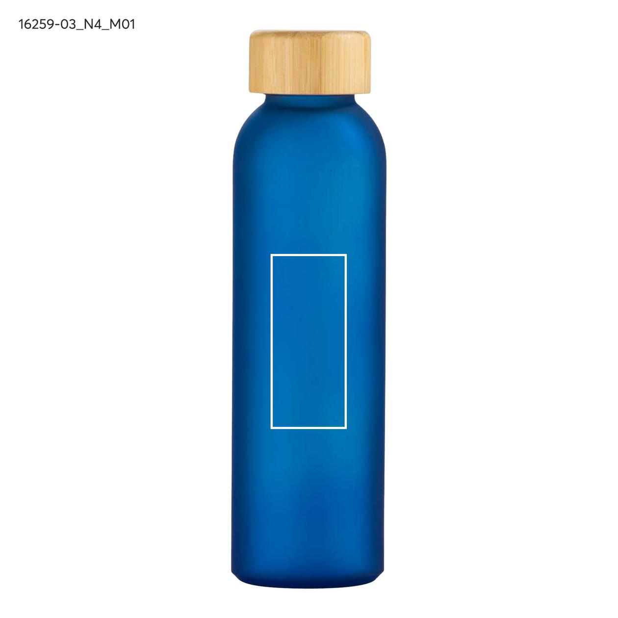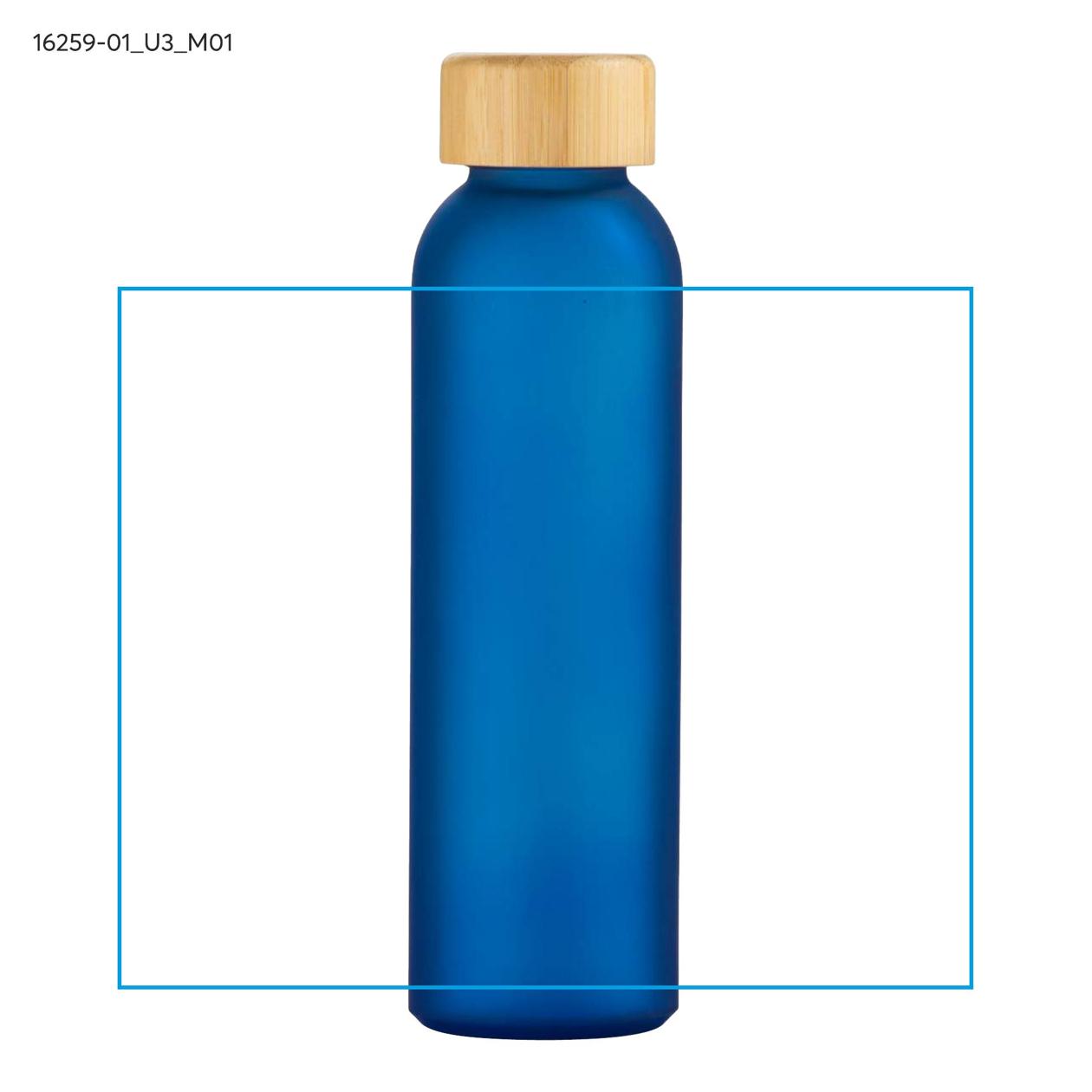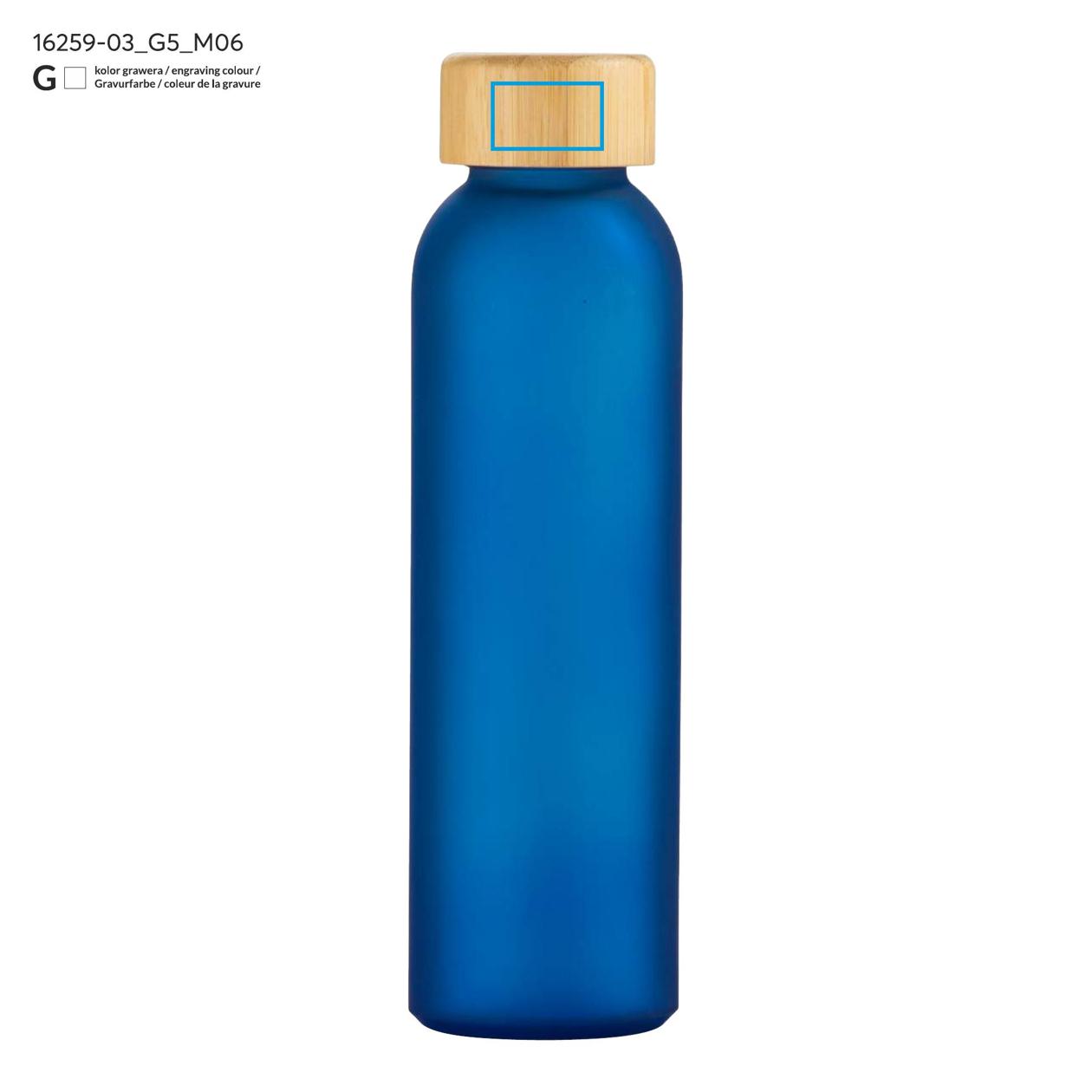 Butelka NILLO o pojemności 500 ml została wykonana z matowego szkła pochodzącego z recyklingu. Jej półprzezroczysta powierzchnia i bambusowa zakrętka nadają całości nowoczesny, stonowany wygląd. Klasyczna, gwintowana zakrętka zapewnia szczelne zamknięcie, a prosta forma sprawia, że butelka jest wygodna w codziennym użytkowaniu. Doskonale sprawdzi się do przechowywania wody, soków lub naparów. To elegancki gadżet wielokrotnego użytku z możliwością znakowania.
