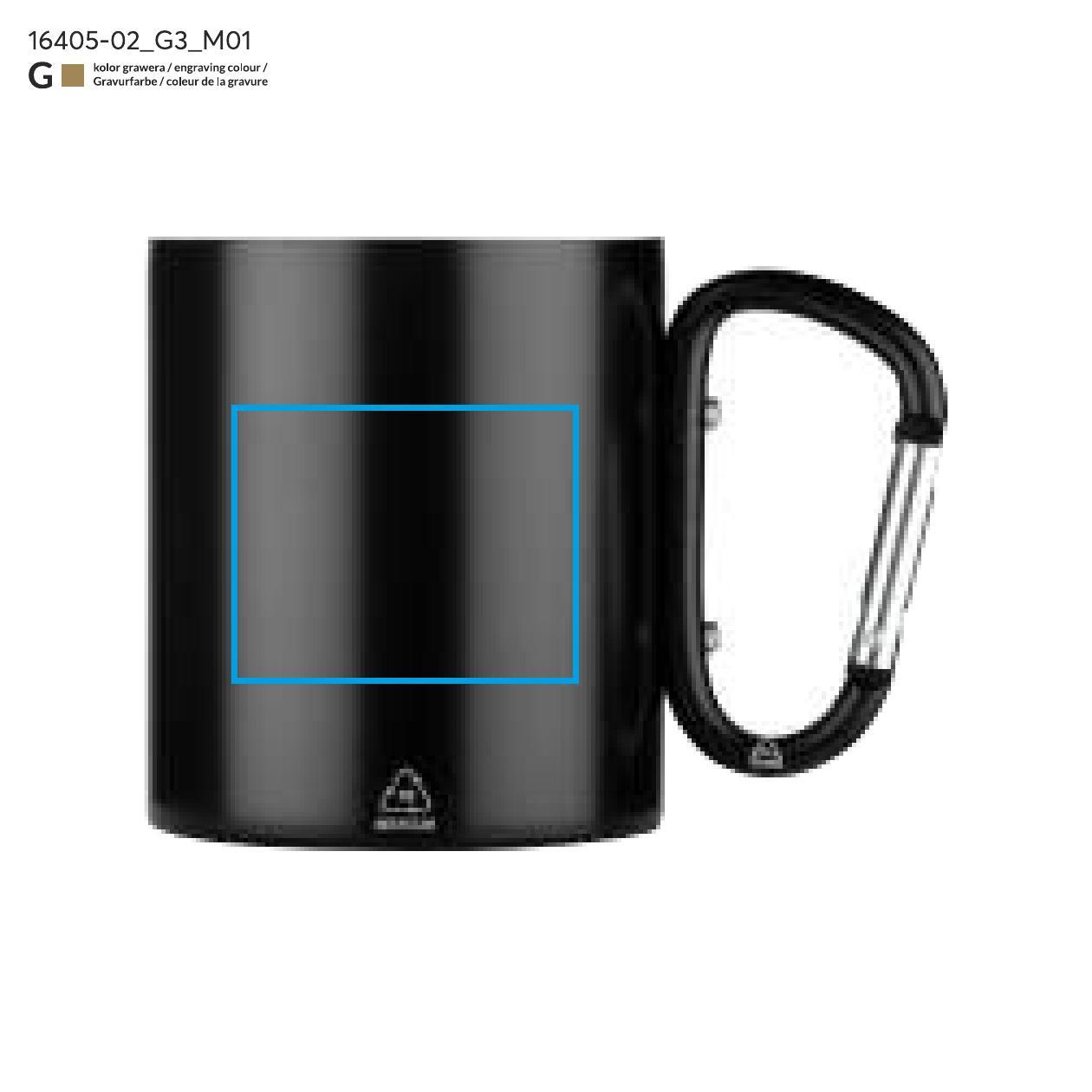 Kubek VIVO o pojemności 250 ml został wykonany z recyklingowanej stali nierdzewnej, a jego uchwyt w formie karabińczyka – z recyklingowanego aluminium. Matowe wykończenie nadaje mu nowoczesny wygląd, a karabińczyk umożliwia łatwe przypięcie kubka do plecaka lub torby. Praktyczny w podróży, podczas biwaku czy spaceru, stanowi atrakcyjny gadżet promocyjny i doskonały wybór dla osób ceniących świadome rozwiązania.