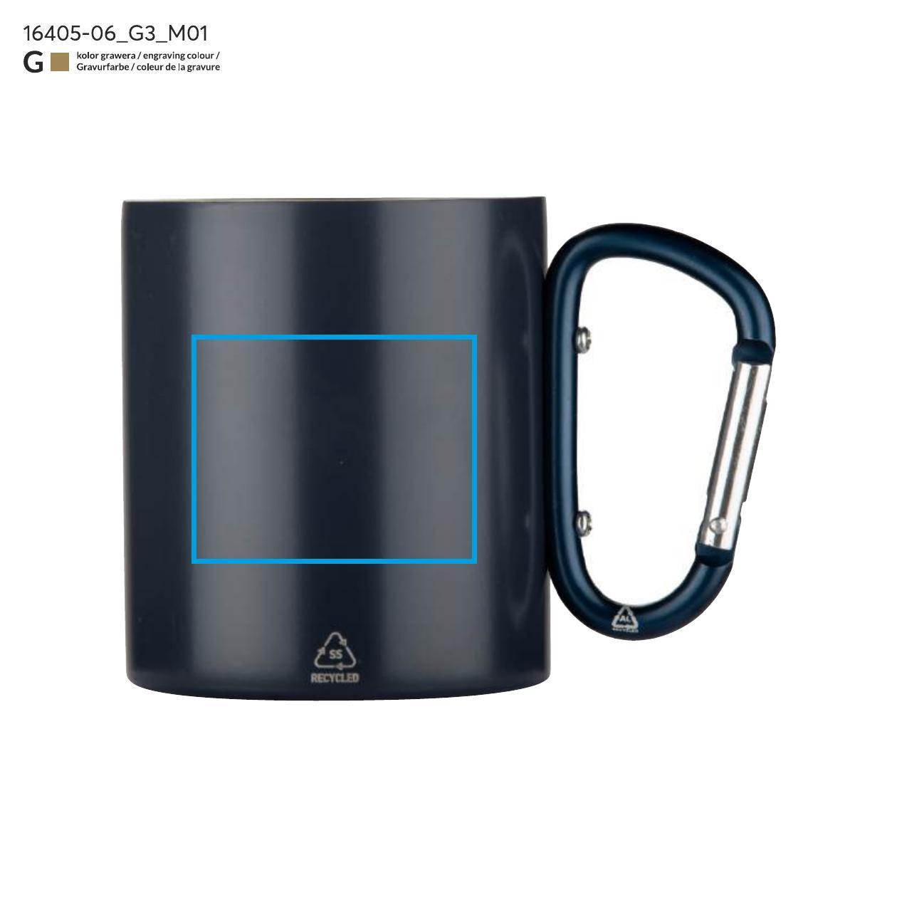 Kubek VIVO o pojemności 250 ml został wykonany z recyklingowanej stali nierdzewnej, a jego uchwyt w formie karabińczyka – z recyklingowanego aluminium. Matowe wykończenie nadaje mu nowoczesny wygląd, a karabińczyk umożliwia łatwe przypięcie kubka do plecaka lub torby. Praktyczny w podróży, podczas biwaku czy spaceru, stanowi atrakcyjny gadżet promocyjny i doskonały wybór dla osób ceniących świadome rozwiązania.