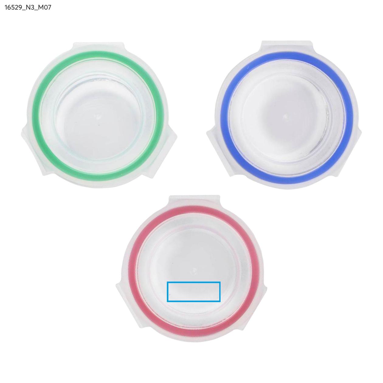 Zestaw PESTO zawiera 3 słoiczki ze szkła borokrzemowego z transparentną przykrywką zamykaną na 3 zaczepy. Każda przykrywka posiada uszczelkę w innym kolorze. Można ich używać do przechowywania żywności oraz podgrzewania potraw w wysokiej temperaturze. Pojemność jednego słoiczka wynosi 120 ml. Słoiczki mogą być używane w zmywarce, piekarniku, kuchence mikrofalowej i zamrażarce.