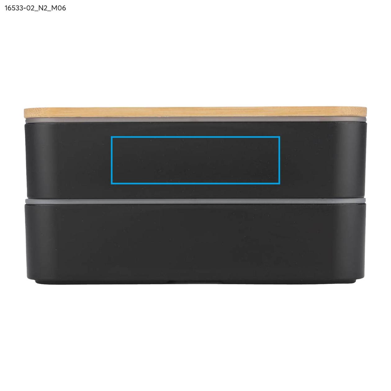 Pojemnik na żywność COUPLE wykonany jest z tworzywa, posiada bambusową przykrywkę i gumkę zapobiegającą przypadkowemu otwarciu. Pojemnik składa się z dwóch połączonych ze sobą komór, umieszczonych jedna pod drugą, rozdzielonych przykrywką. Pojemnik może być używany w zmywarce, kuchence mikrofalowej i zamrażarce.