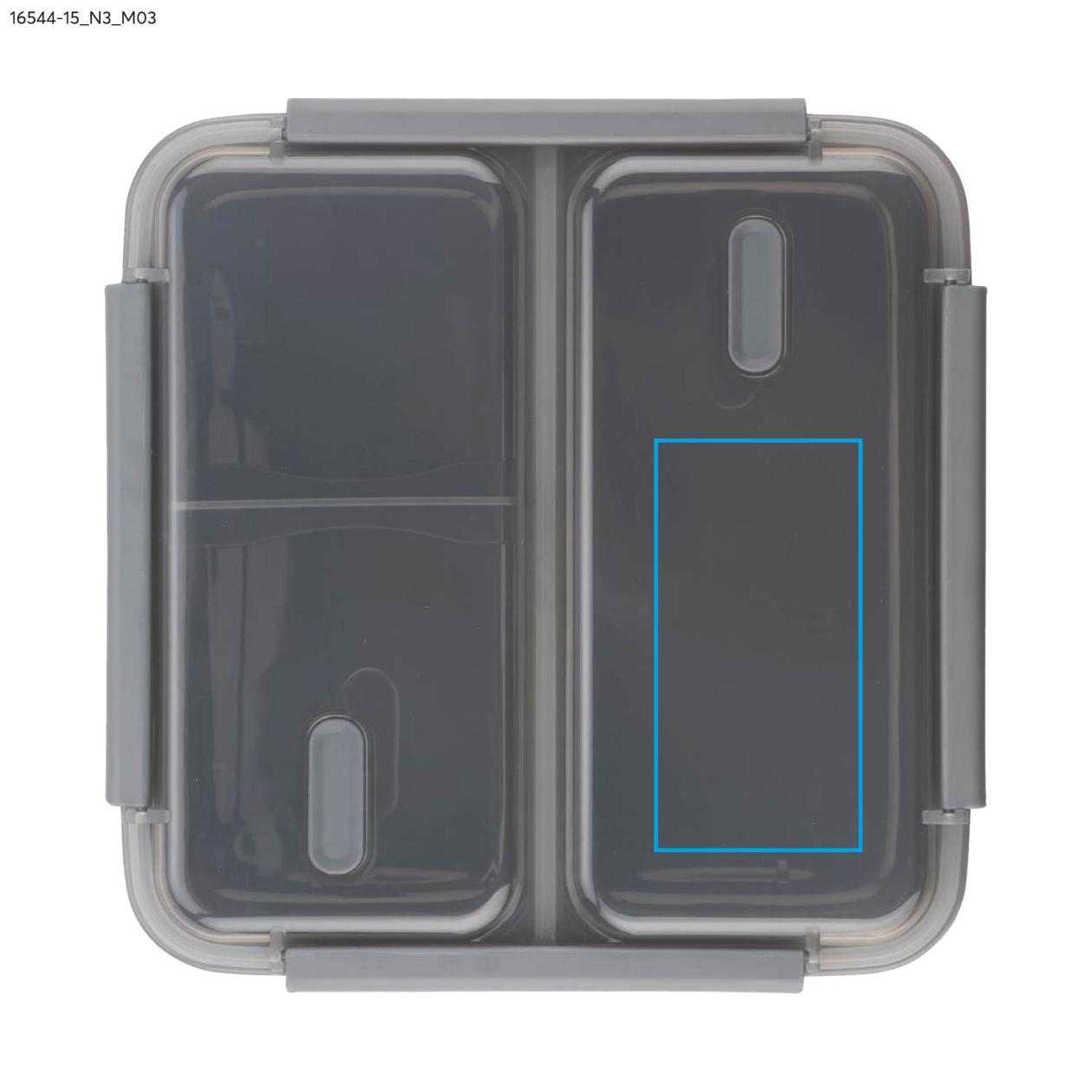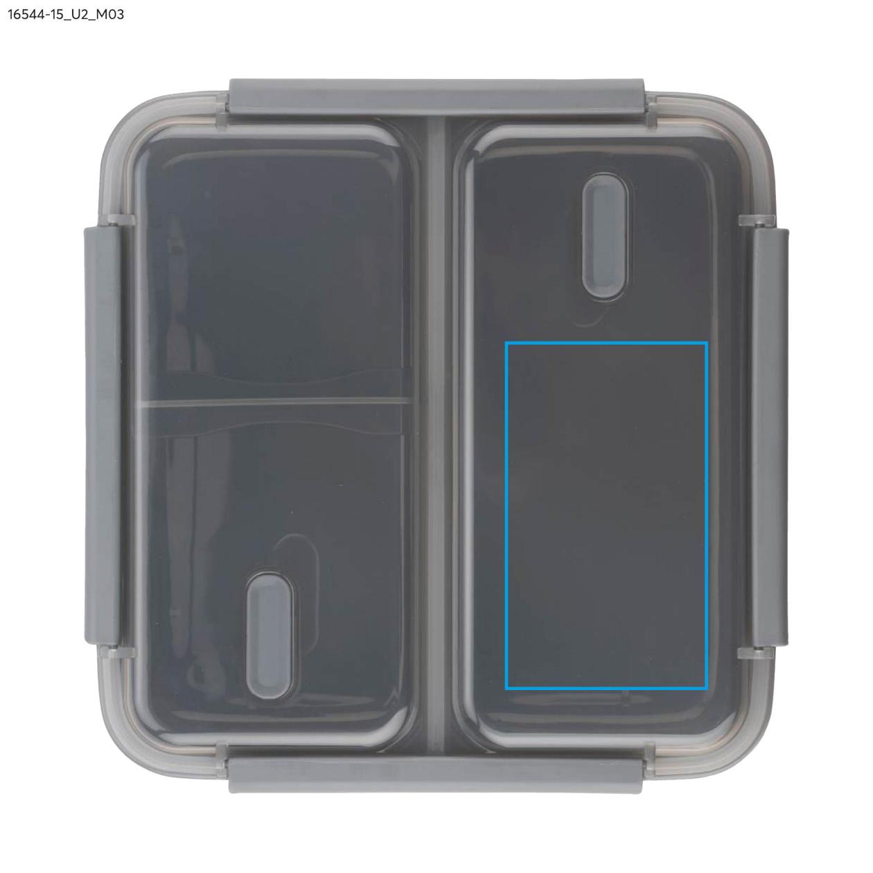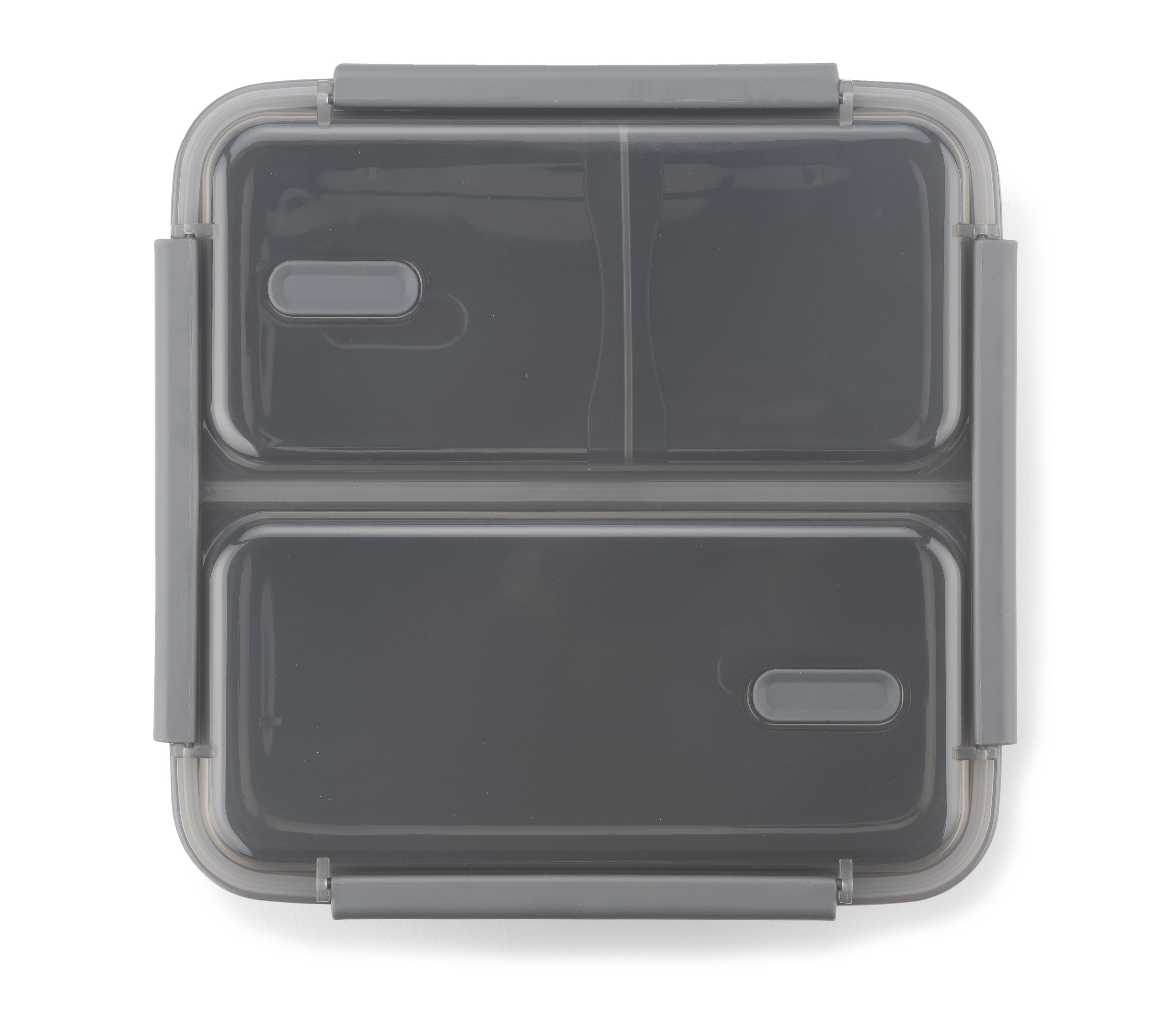 Pojemnik na lunch DUO posiada 2 główne komory i dodatkowy wyjmowany separator. Posiada uszczelkę w pokrywce. Zamykany na cztery zatrzaski. Pojemność pojemnika 1100 ml zmieści duży obiad. Wykonany z tworzywa polipropylenowego, bezpieczny w kontakcie z żywnością.