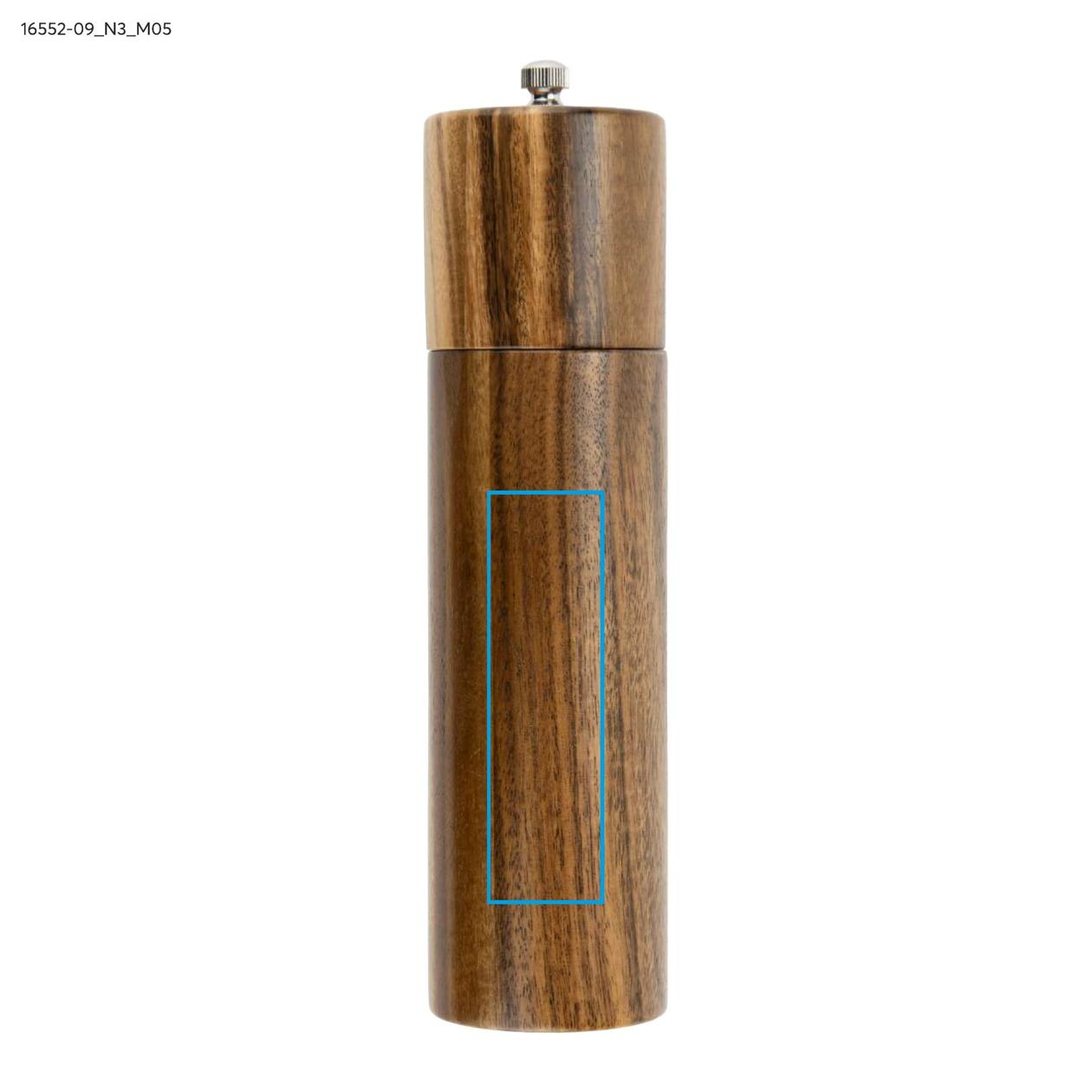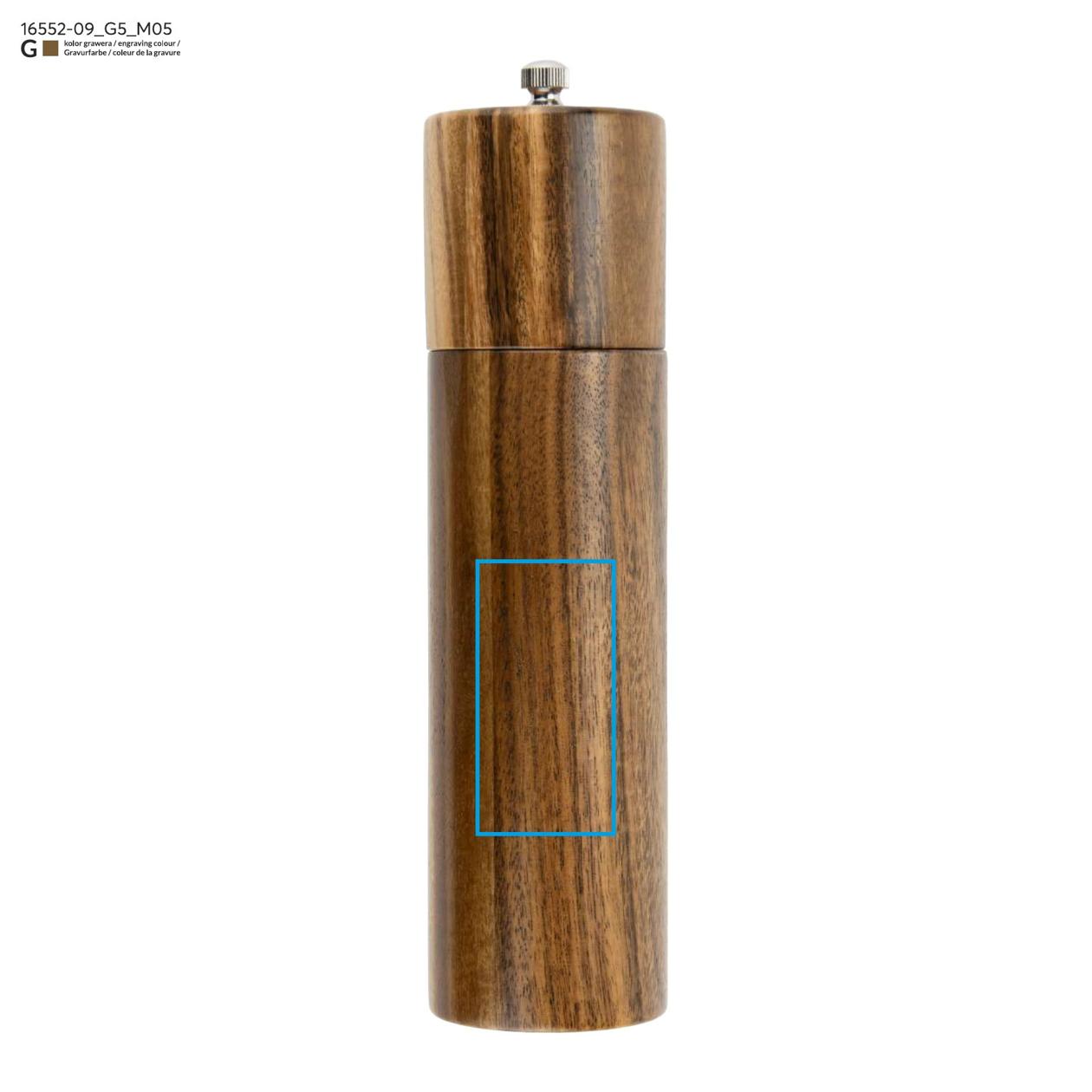GRINO to solidny, drewniany młynek do soli lub pieprzu, który doskonale sprawdzi się zarówno w kuchni, jak i na eleganckim stole. Wykonany z wysokiej jakości drewna, zapewnia wygodne użytkowanie i precyzyjne mielenie przypraw. Klasyczna forma i naturalne wykończenie nadają mu ponadczasowy charakter, który łatwo dopasować do różnych stylów wnętrz. GRINO to także świetna propozycja na upominek — pojedynczo lub w zestawie dwóch młynków zapakowanych w pudełko prezentowe z motywem soli i pieprzu. Produkt dostępny z możliwością znakowania, co pozwala stworzyć praktyczny i stylowy gadżet firmowy.