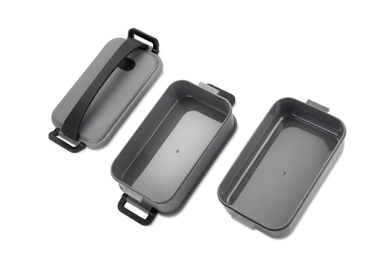 Pojemnik MUNCH 1500 ml to praktyczne rozwiązanie do przechowywania i przenoszenia posiłków w pracy, szkole czy w podróży. Składa się z dwóch pięter, które można łatwo połączyć w całość za pomocą elastycznego zapięcia. Po złożeniu zajmuje niewiele miejsca, co ułatwia transport i przechowywanie. Górne wieczko wyposażono w gumowy uchwyt, który zwiększa komfort noszenia. Dzięki solidnej konstrukcji pojemnik dobrze zabezpiecza jedzenie przed wylaniem. Idealny jako gadżet firmowy — dostępny z usługą znakowania.