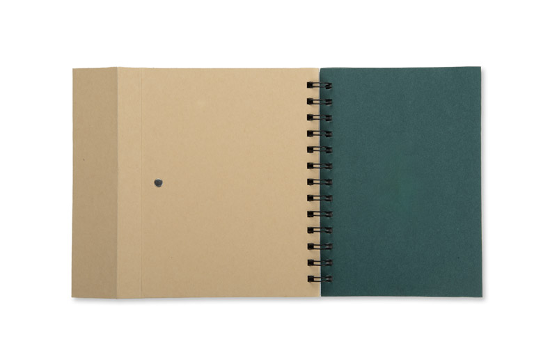 Notes MAGO B6 to funkcjonalny notatnik kołowy zamykany na magnes, idealny do codziennego użytku w biurze lub w terenie. W środku znajduje się 70 białych kartek w linie, zestaw samoprzylepnych karteczek (6 bloczków po 25 sztuk: 2 większe oraz 4 indeksujące w neonowych kolorach) oraz papierowy długopis, umieszczony w praktycznym uchwycie. Poręczny i kompletny zestaw do notowania i organizowania informacji – zawsze pod ręką.