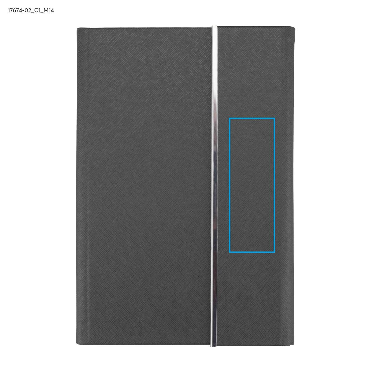 Notes wykonany z materiału skóropodobnego (PU) o ciekawym wzornictwie. Okładka zamykana na magnesy, wykończona z jednej strony blaszką w kolorze srebrnym. Notes INA to elegancki wygląd, solidne wykonanie i piękne wzornictwo. Wnętrze notesu wykonane z papieru o gramaturze 80 gram, 80 kremowych kartek w szare linie. Format A5.
