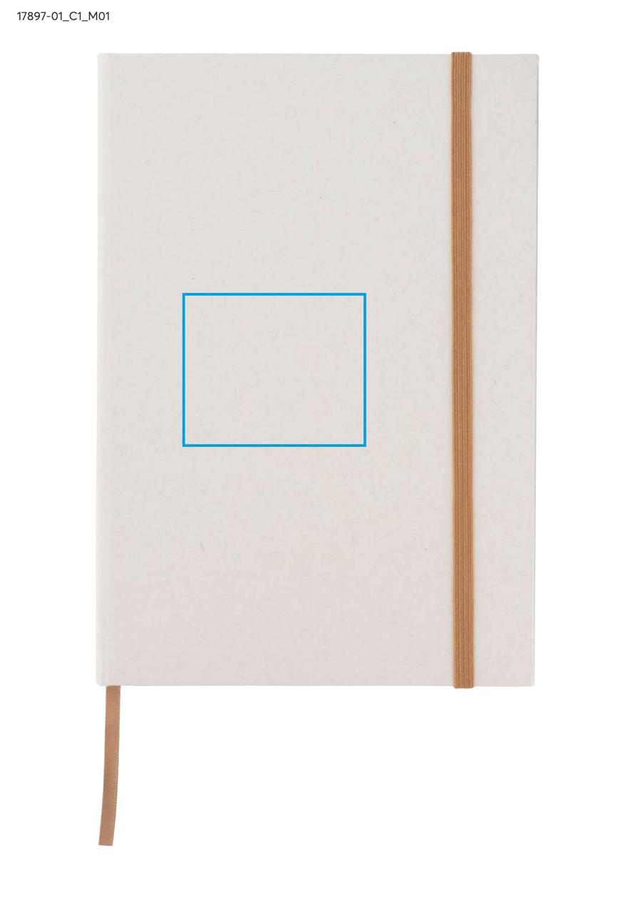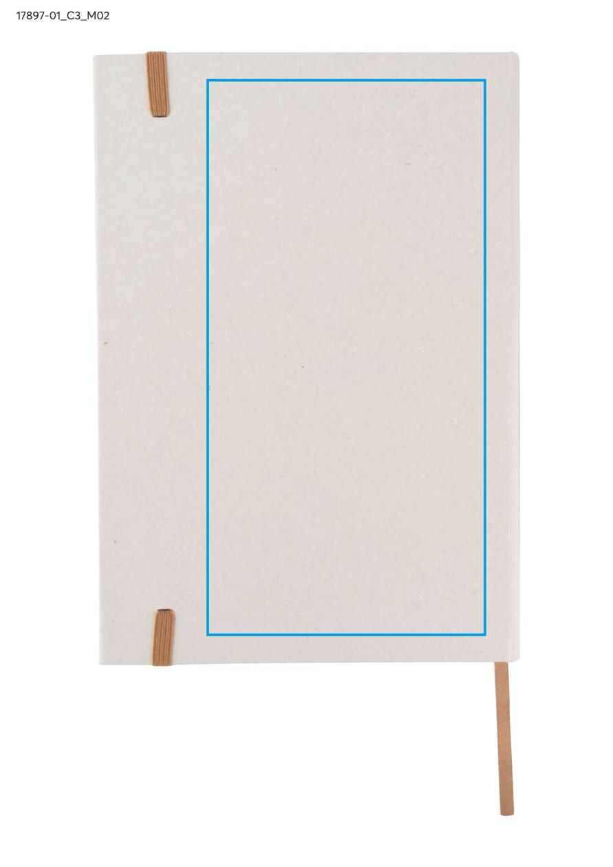 Okładka i kartki w notesie zostały wyprodukowane z kartonów po mleku. Okładka zamykana za pomocą elastycznej gumki. Wewnątrz znajduje się wstążeczka pełniąca funkcję zakładki. Format A5, 80 gładkich kartek.