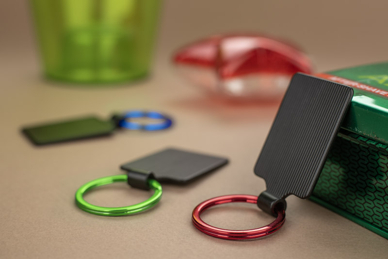 Brelok COLORS to prosty, ale efektowny gadżet reklamowy, który łączy funkcjonalność z ciekawym designem. Składa się z metalowego kółka w kolorze oraz kwadratowej zawieszki, która stanowi miejsce na znakowanie. Dostępny w kilku wariantach kolorystycznych, pozwala dopasować gadżet do identyfikacji wizualnej marki. Szczególną zaletą jest efekt znakowania – grawer sprawia, że logo przybiera kolor kółka, tworząc spójny i estetyczny detal.