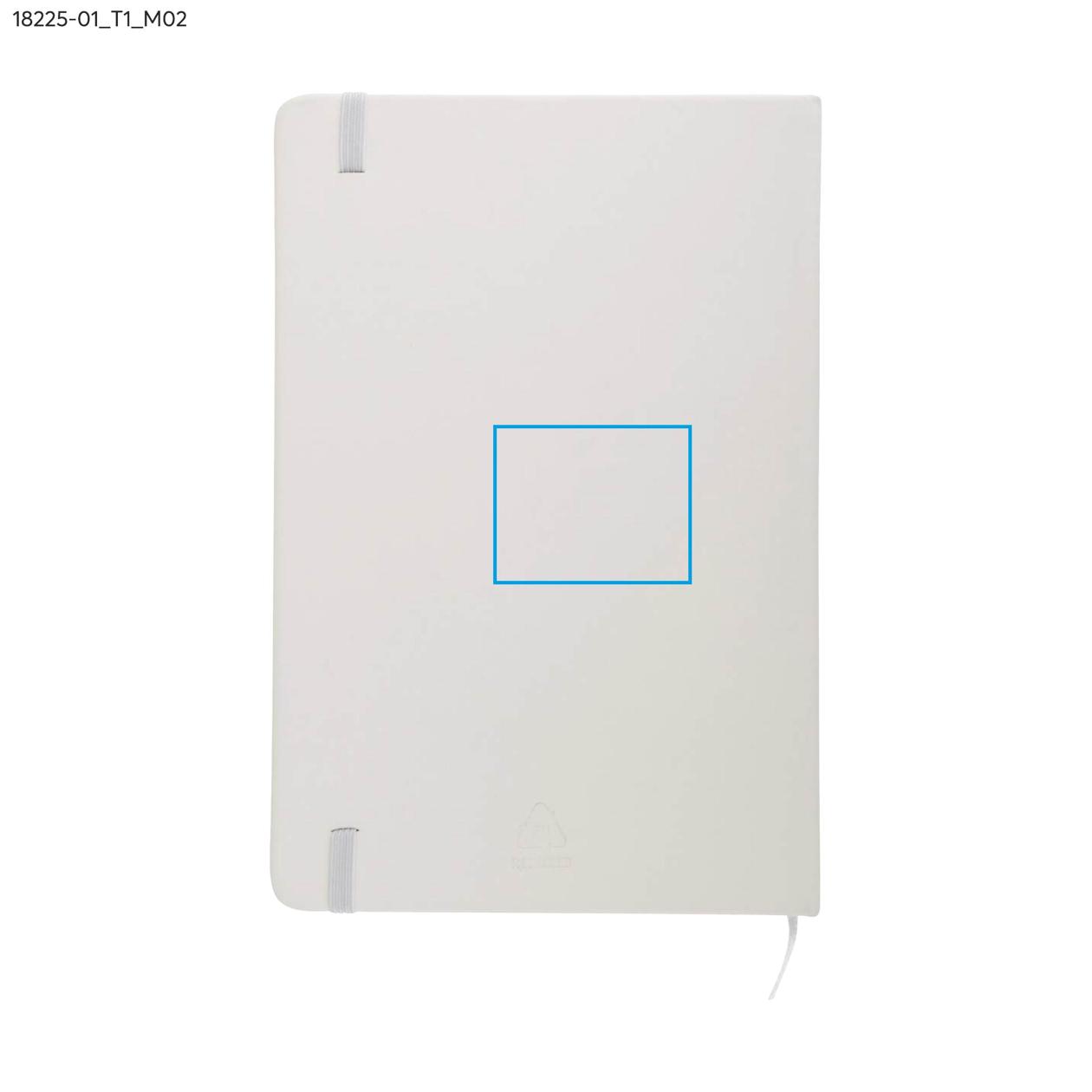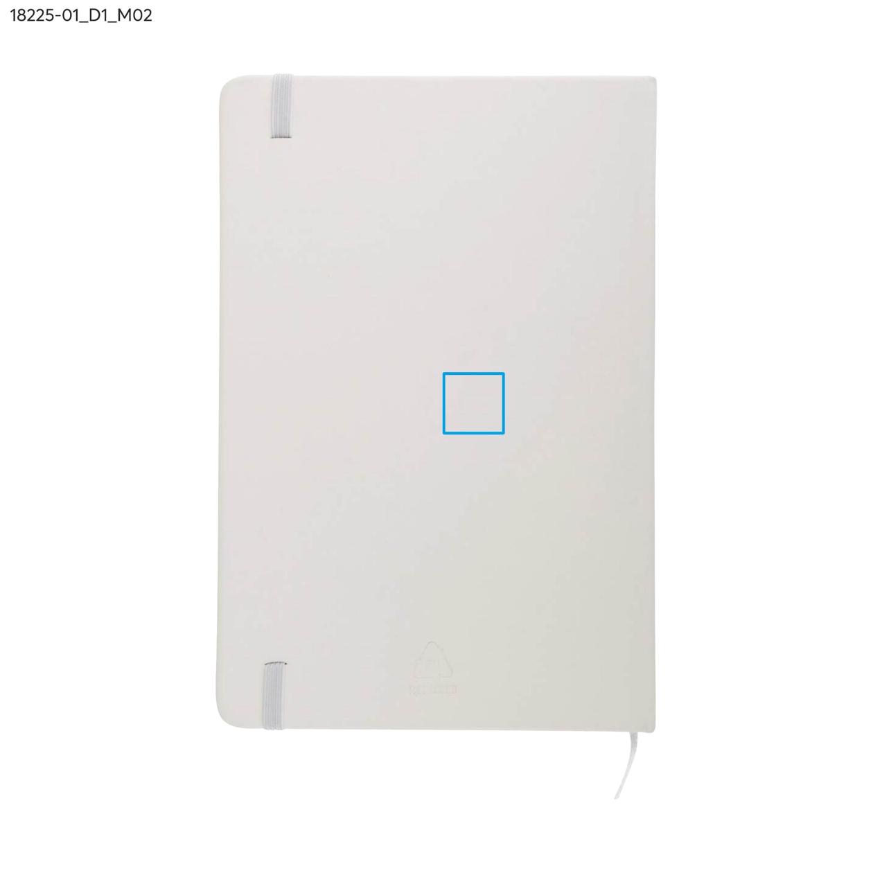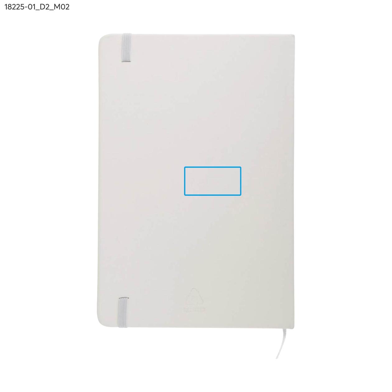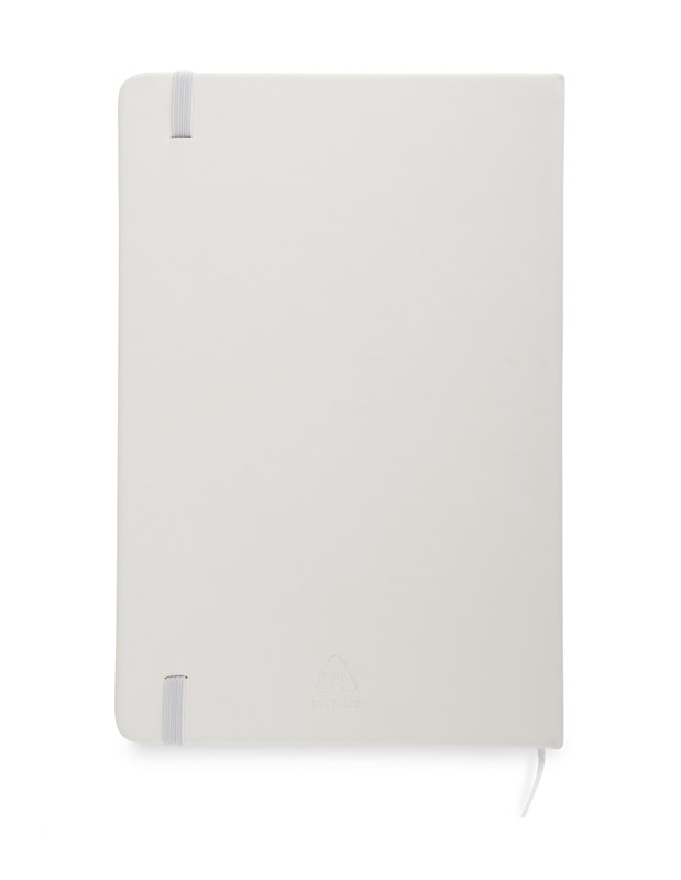 rVITAL to praktyczny notes reklamowy w formacie A5, idealny do codziennego użytku w biurze lub w terenie. Zawiera 70 szytych kartek w kratkę, wykonanych z papieru w kolorze ecru o gramaturze 70 g/m². Miękka okładka z recyklingowanego materiału skóropodobnego (PU) dobrze znosi intensywne użytkowanie, a elastyczna gumka ułatwia zamykanie. rVITAL świetnie sprawdzi się jako funkcjonalny gadżet promocyjny lub element firmowego zestawu upominkowego.