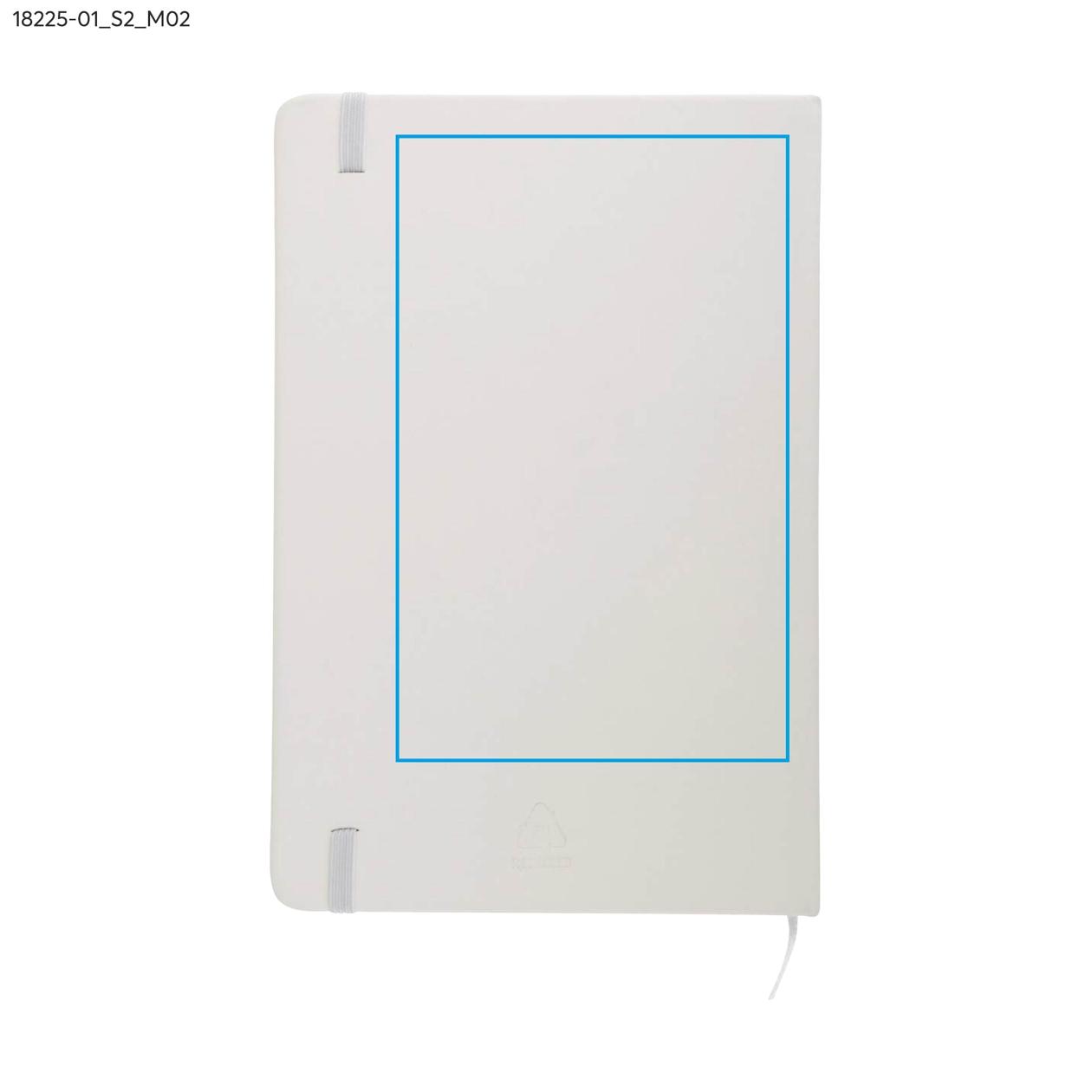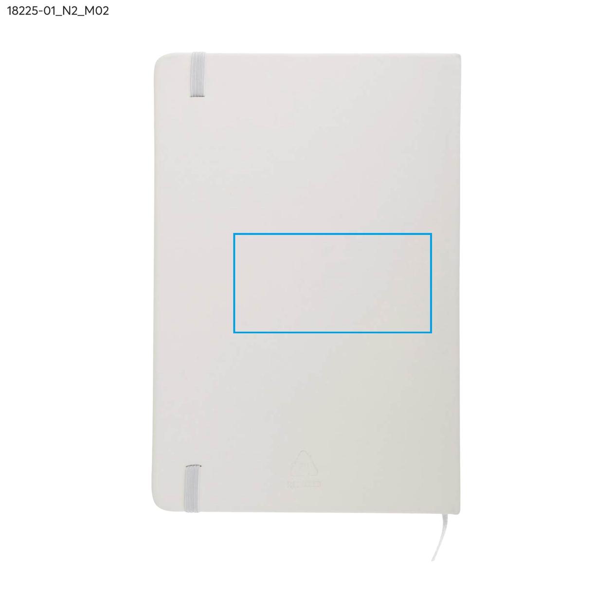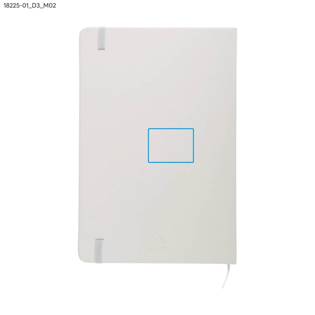 rVITAL to praktyczny notes reklamowy w formacie A5, idealny do codziennego użytku w biurze lub w terenie. Zawiera 70 szytych kartek w kratkę, wykonanych z papieru w kolorze ecru o gramaturze 70 g/m². Miękka okładka z recyklingowanego materiału skóropodobnego (PU) dobrze znosi intensywne użytkowanie, a elastyczna gumka ułatwia zamykanie. rVITAL świetnie sprawdzi się jako funkcjonalny gadżet promocyjny lub element firmowego zestawu upominkowego.