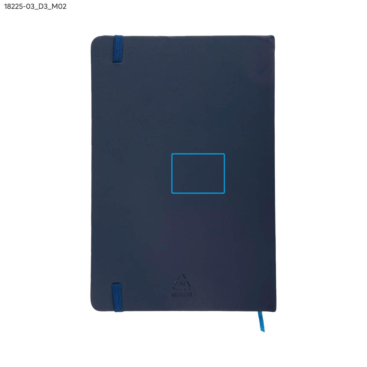rVITAL to praktyczny notes reklamowy w formacie A5, idealny do codziennego użytku w biurze lub w terenie. Zawiera 70 szytych kartek w kratkę, wykonanych z papieru w kolorze ecru o gramaturze 70 g/m². Miękka okładka z recyklingowanego materiału skóropodobnego (PU) dobrze znosi intensywne użytkowanie, a elastyczna gumka ułatwia zamykanie. rVITAL świetnie sprawdzi się jako funkcjonalny gadżet promocyjny lub element firmowego zestawu upominkowego.