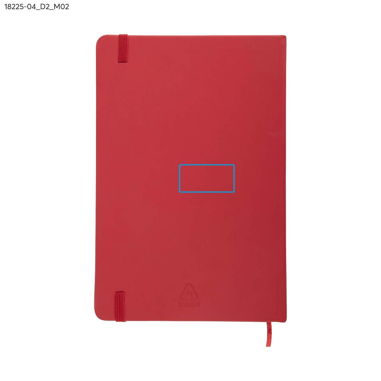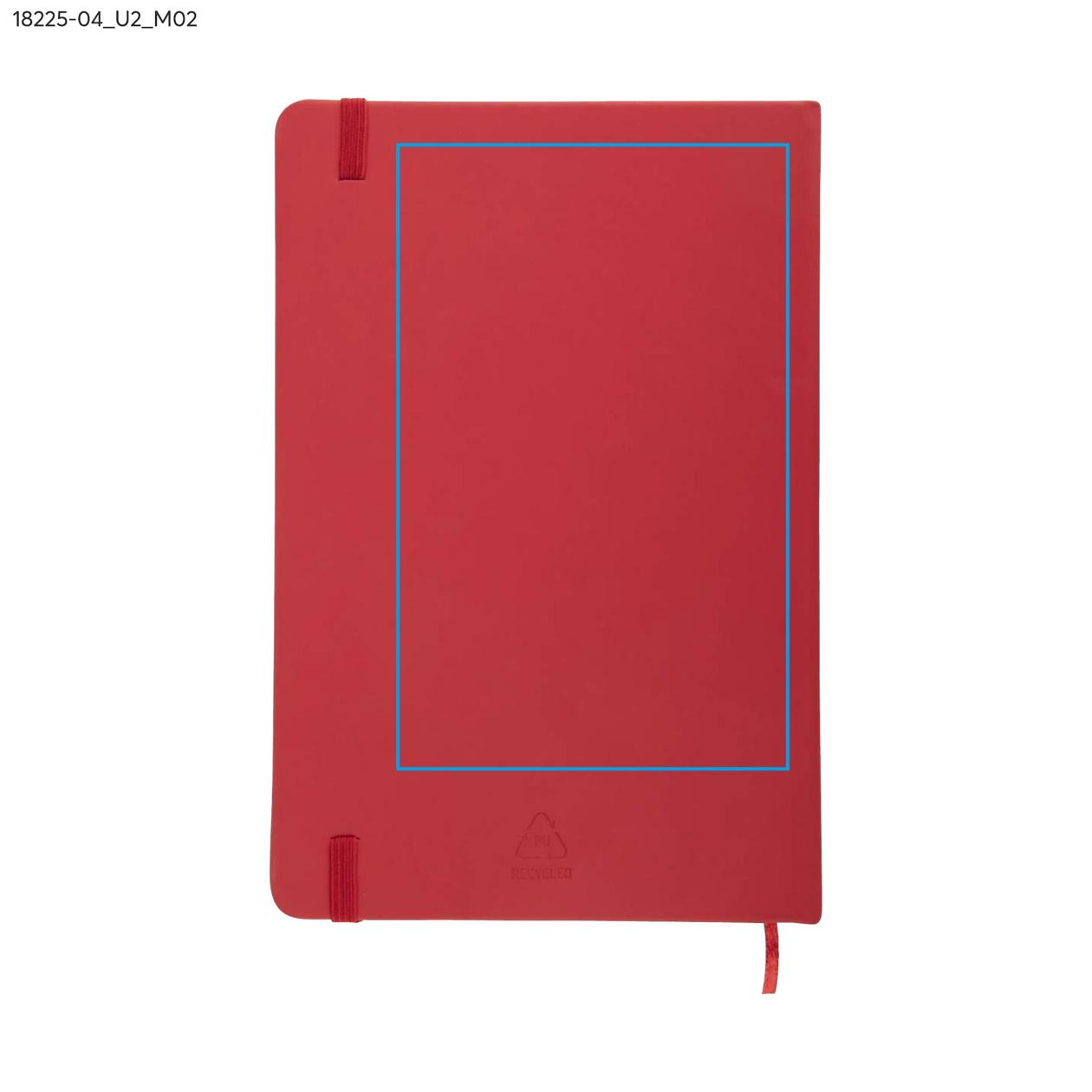rVITAL to praktyczny notes reklamowy w formacie A5, idealny do codziennego użytku w biurze lub w terenie. Zawiera 70 szytych kartek w kratkę, wykonanych z papieru w kolorze ecru o gramaturze 70 g/m². Miękka okładka z recyklingowanego materiału skóropodobnego (PU) dobrze znosi intensywne użytkowanie, a elastyczna gumka ułatwia zamykanie. rVITAL świetnie sprawdzi się jako funkcjonalny gadżet promocyjny lub element firmowego zestawu upominkowego.
