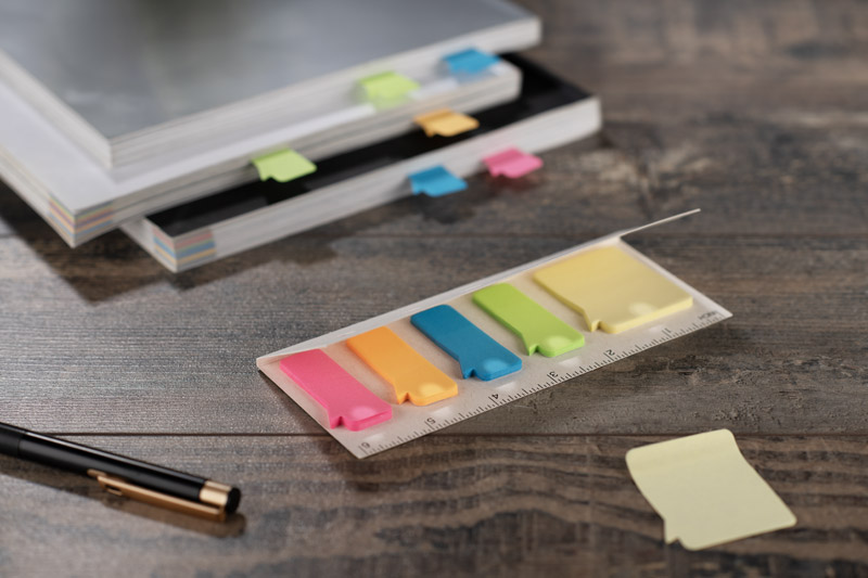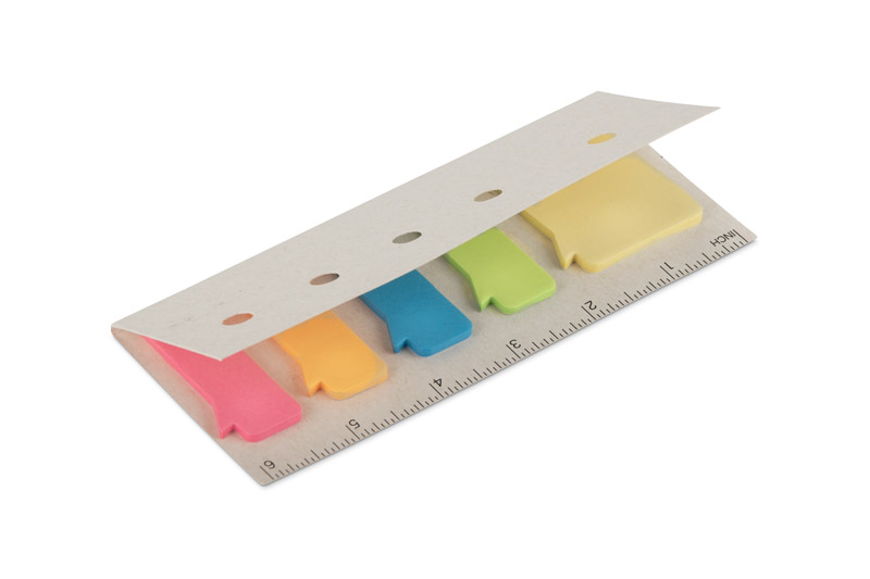 Zestaw karteczek samoprzylepnych CLOUD to funkcjonalny gadżet biurowy o nietypowym, przyciągającym wzrok designie. Wykonany z recyklingowanego kartonu po mleku, łączy w sobie praktyczne kolorowe zakładki oraz linijkę, która stanowi część opakowania. Kompaktowy format sprawia, że zestaw idealnie sprawdzi się zarówno w biurze, jak i w podróży – do szybkiego notowania, planowania i organizowania dokumentów. Świetny jako dodatek do zestawów biurowych i kreatywnych kampanii promocyjnych.