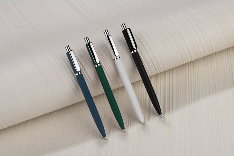 Długopis ELMO to elegancki model o nowoczesnym wyglądzie, wykonany z metalu pokrytego powłoką typu soft touch. Gumowana powierzchnia zapewnia przyjemny i pewny chwyt, a krótki, zaokrąglony klip w srebrnym, metalowym wykończeniu dodaje całości subtelnego charakteru. Długopis wyposażony jest w automatyczny mechanizm wysuwu oraz wkład typu G2 o grubości pisania 0,7 mm, gwarantujący płynny i precyzyjny zapis.