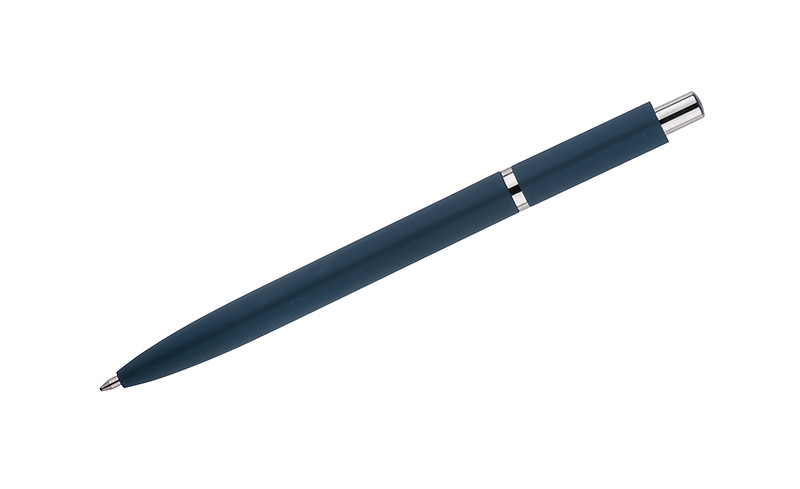 Długopis ELMO to elegancki model o nowoczesnym wyglądzie, wykonany z metalu pokrytego powłoką typu soft touch. Gumowana powierzchnia zapewnia przyjemny i pewny chwyt, a krótki, zaokrąglony klip w srebrnym, metalowym wykończeniu dodaje całości subtelnego charakteru. Długopis wyposażony jest w automatyczny mechanizm wysuwu oraz wkład typu G2 o grubości pisania 0,7 mm, gwarantujący płynny i precyzyjny zapis.