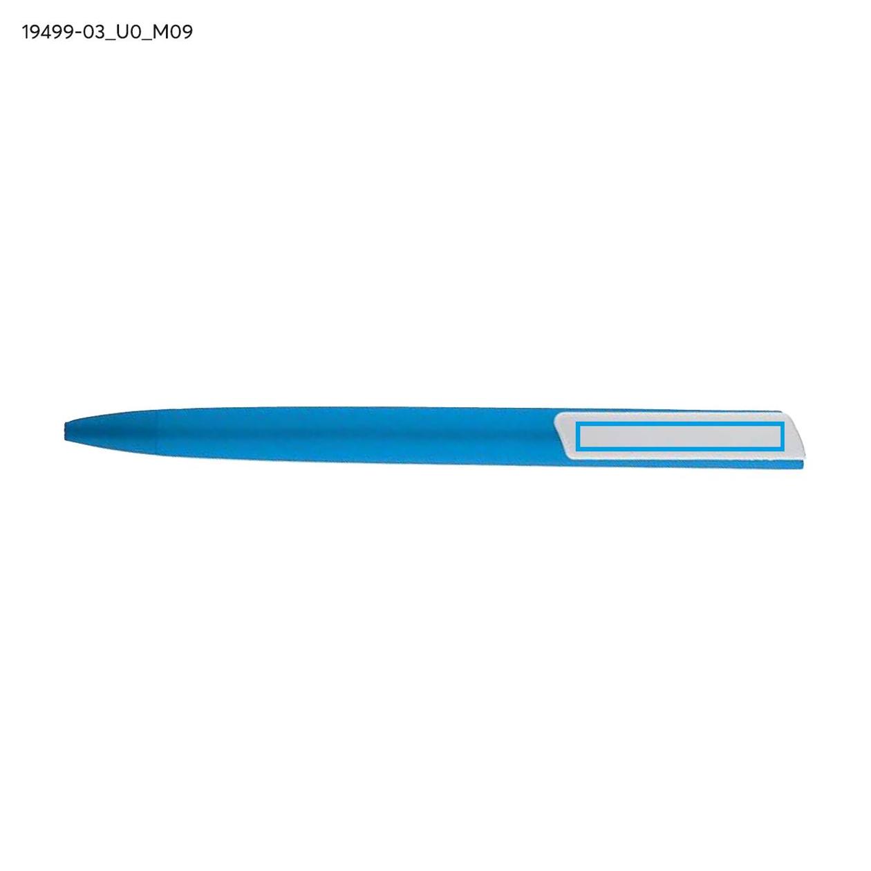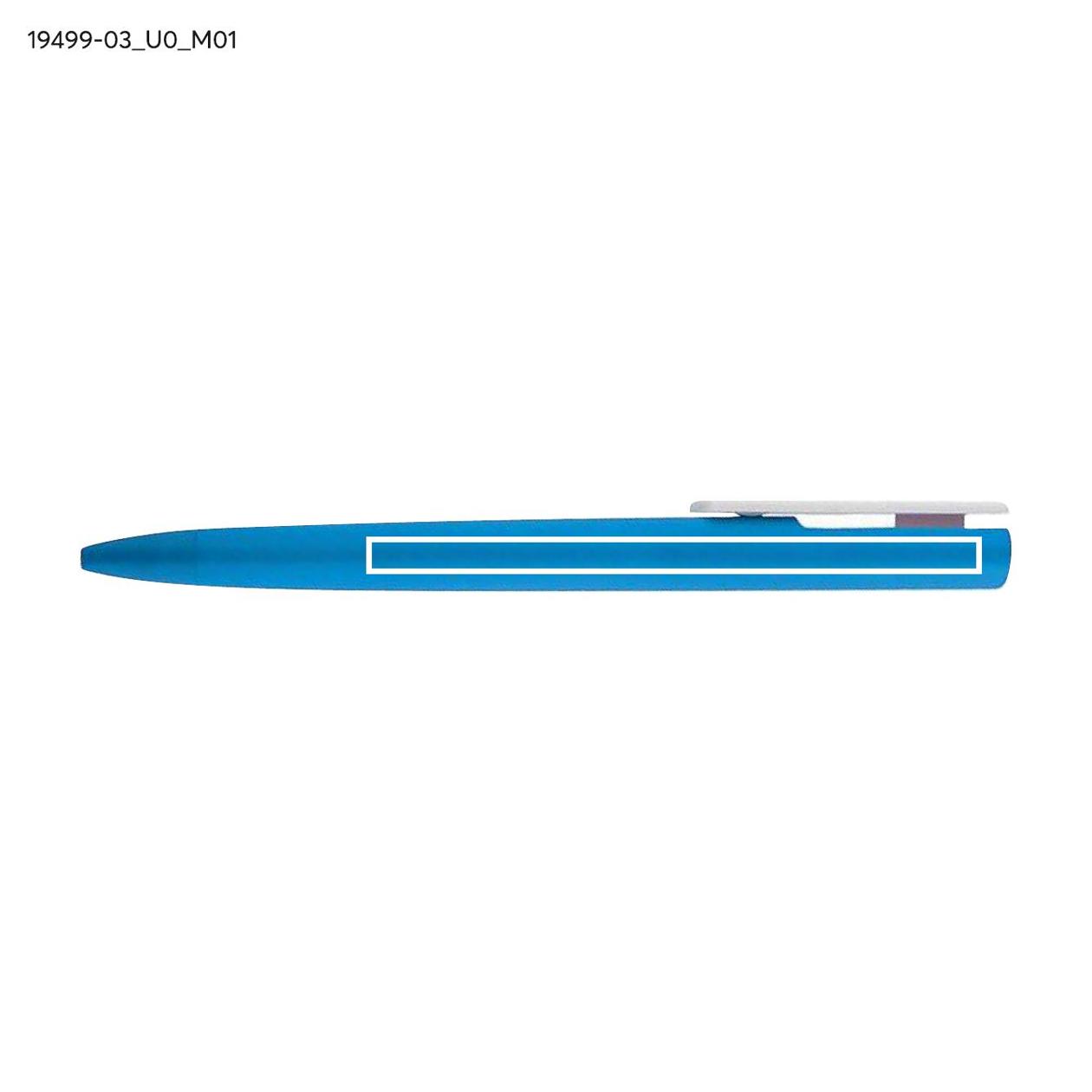 Długopis ALEO wykonany jest z tworzywa pokrytego matową powłoką soft touch, która nadaje mu przyjemną, lekko gumowaną strukturę. Dzięki automatycznemu mechanizmowi wysuwu i wkładowi typu X20 o grubości pisania 0,7 mm zapewnia płynne i komfortowe pisanie. Biały, płaski klip stanowi idealne miejsce do znakowania logo. Prosty, nowoczesny kształt i gładka powierzchnia sprawiają, że ALEO sprawdza się jako uniwersalny gadżet reklamowy.