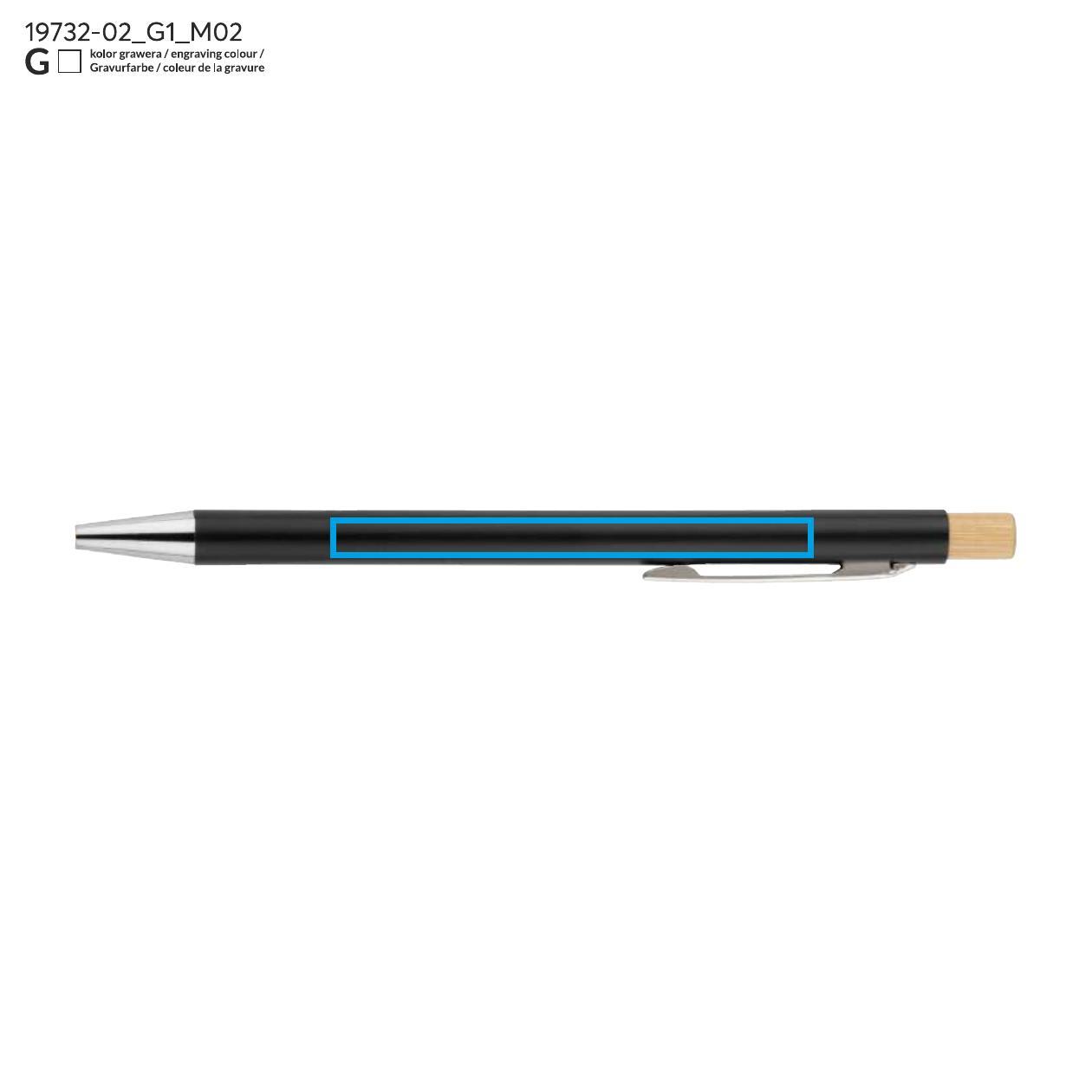 Długopis KIVO to smukły i lekki model o satynowym wykończeniu, który zapewnia wyjątkowy komfort pisania. Subtelny bambusowy przycisk stanowi naturalny akcent, podkreślający nowoczesny charakter długopisu. Mechanizm automatyczny umożliwia wygodne wysuwanie wkładu typu X20 o grubości pisania 1,0 mm, gwarantującego miękki i równy zapis. KIVO to elegancki i funkcjonalny gadżet reklamowy, idealny do codziennego użytku w biurze czy podczas spotkań.