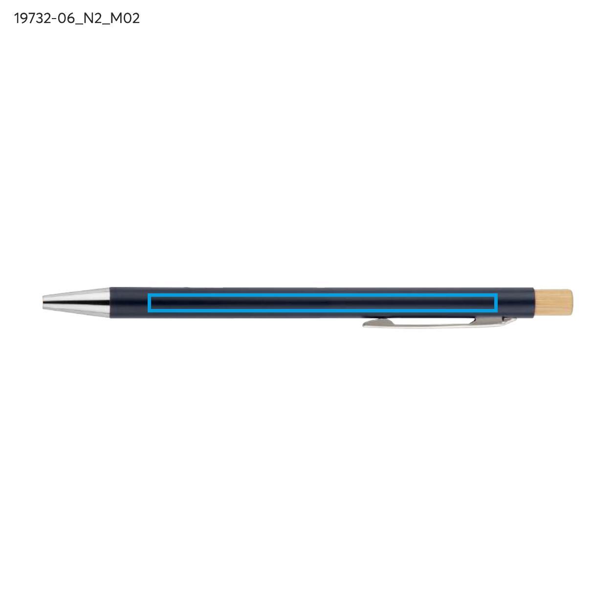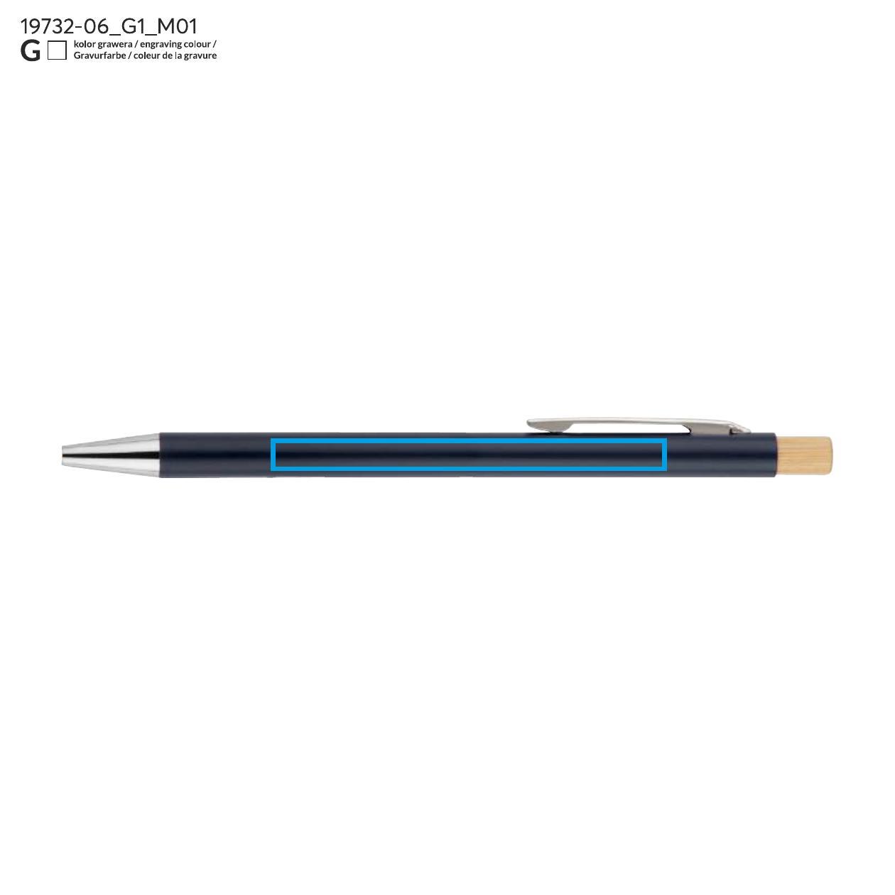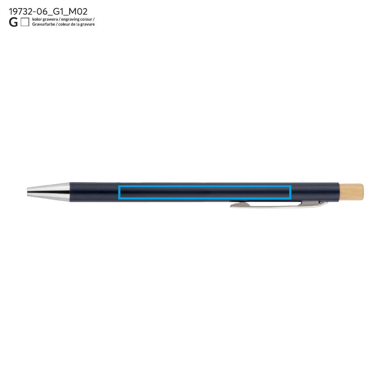 Długopis KIVO to smukły i lekki model o satynowym wykończeniu, który zapewnia wyjątkowy komfort pisania. Subtelny bambusowy przycisk stanowi naturalny akcent, podkreślający nowoczesny charakter długopisu. Mechanizm automatyczny umożliwia wygodne wysuwanie wkładu typu X20 o grubości pisania 1,0 mm, gwarantującego miękki i równy zapis. KIVO to elegancki i funkcjonalny gadżet reklamowy, idealny do codziennego użytku w biurze czy podczas spotkań.