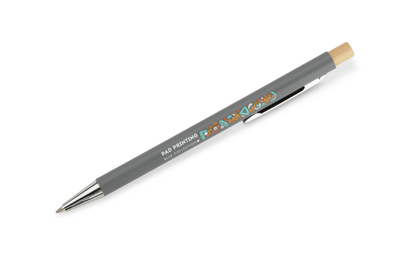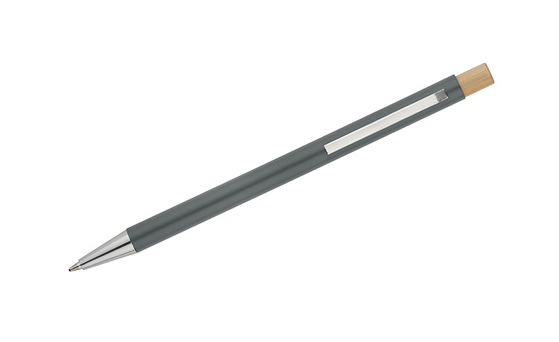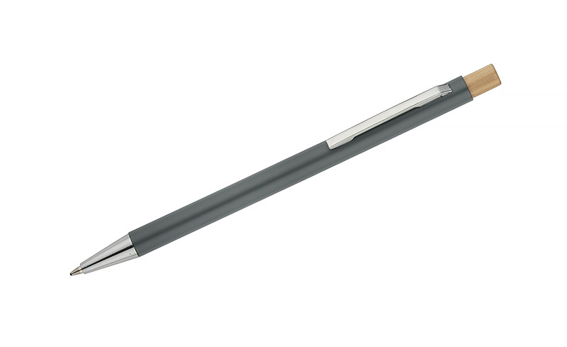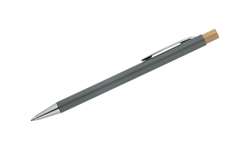 Długopis KIVO to smukły i lekki model o satynowym wykończeniu, który zapewnia wyjątkowy komfort pisania. Subtelny bambusowy przycisk stanowi naturalny akcent, podkreślający nowoczesny charakter długopisu. Mechanizm automatyczny umożliwia wygodne wysuwanie wkładu typu X20 o grubości pisania 1,0 mm, gwarantującego miękki i równy zapis. KIVO to elegancki i funkcjonalny gadżet reklamowy, idealny do codziennego użytku w biurze czy podczas spotkań.