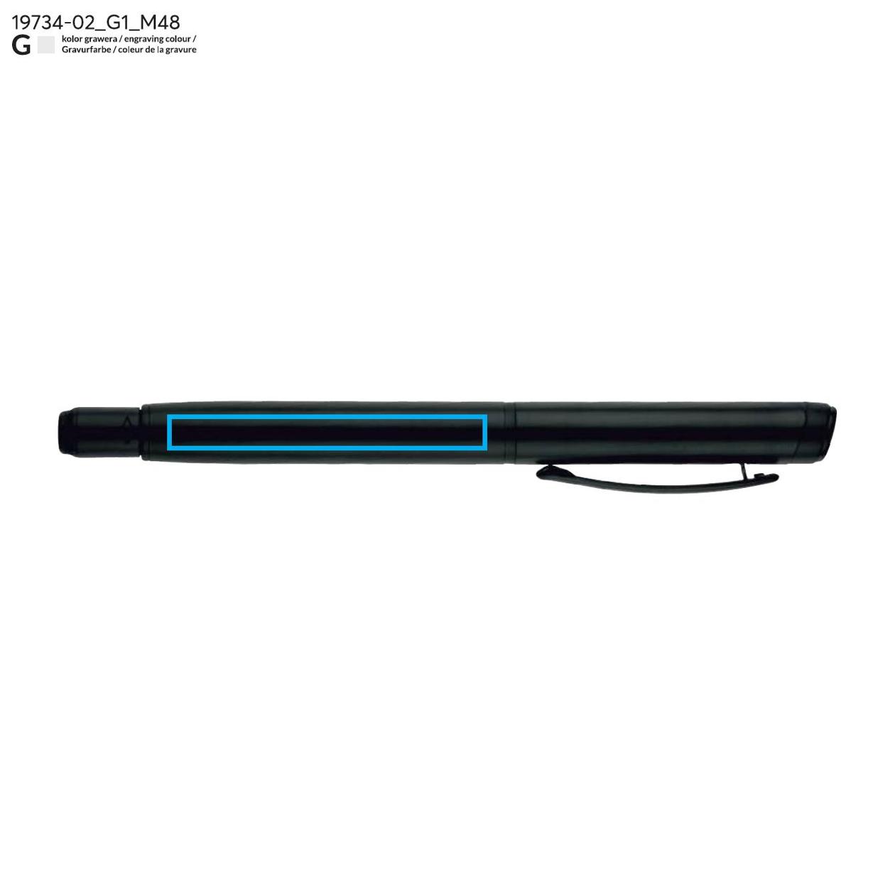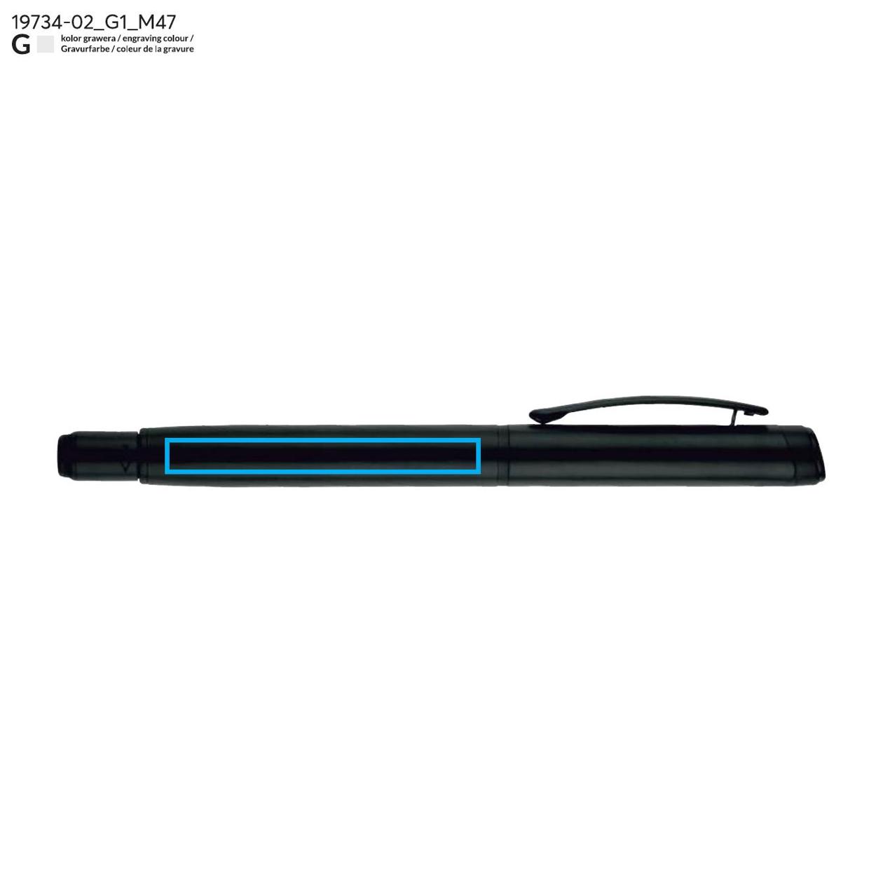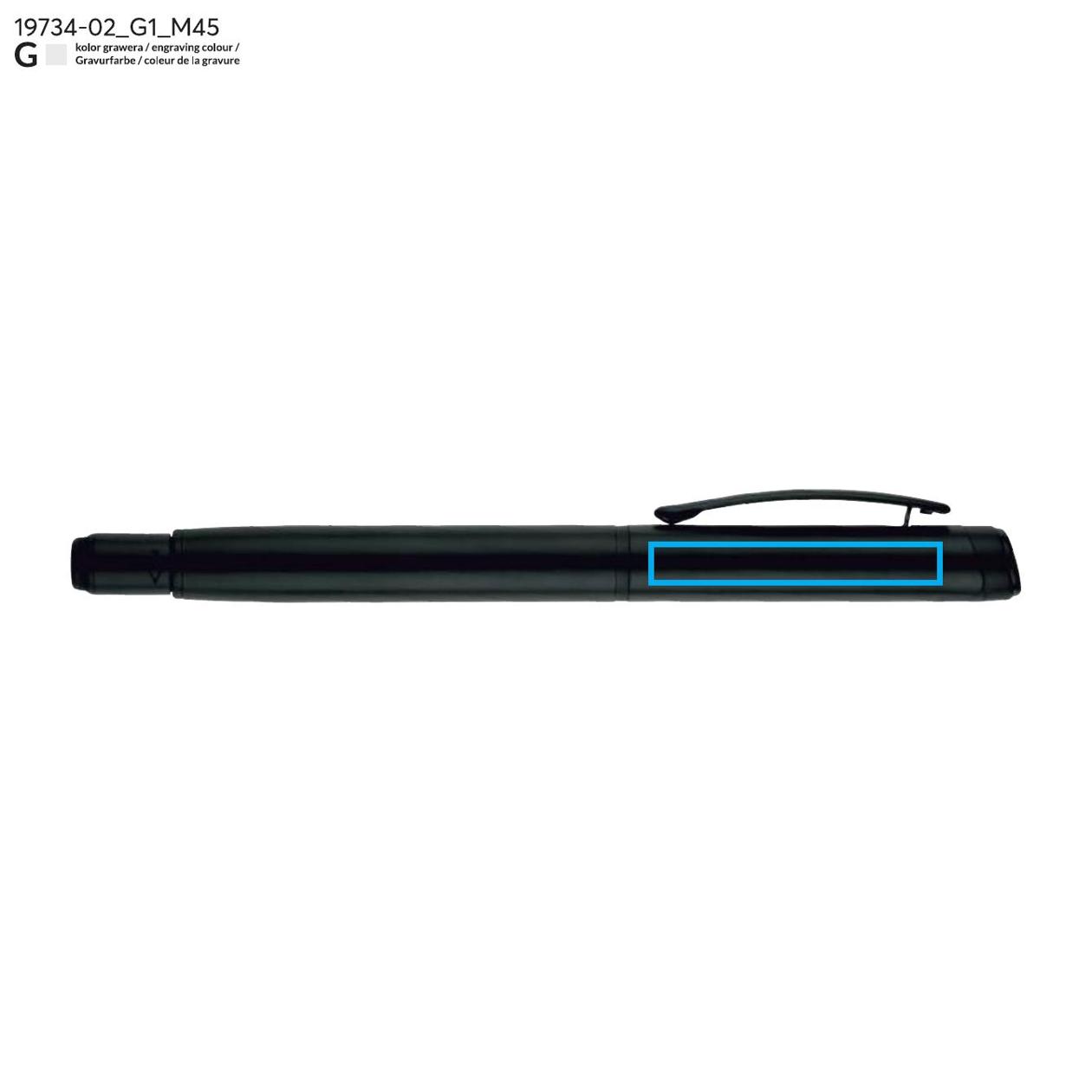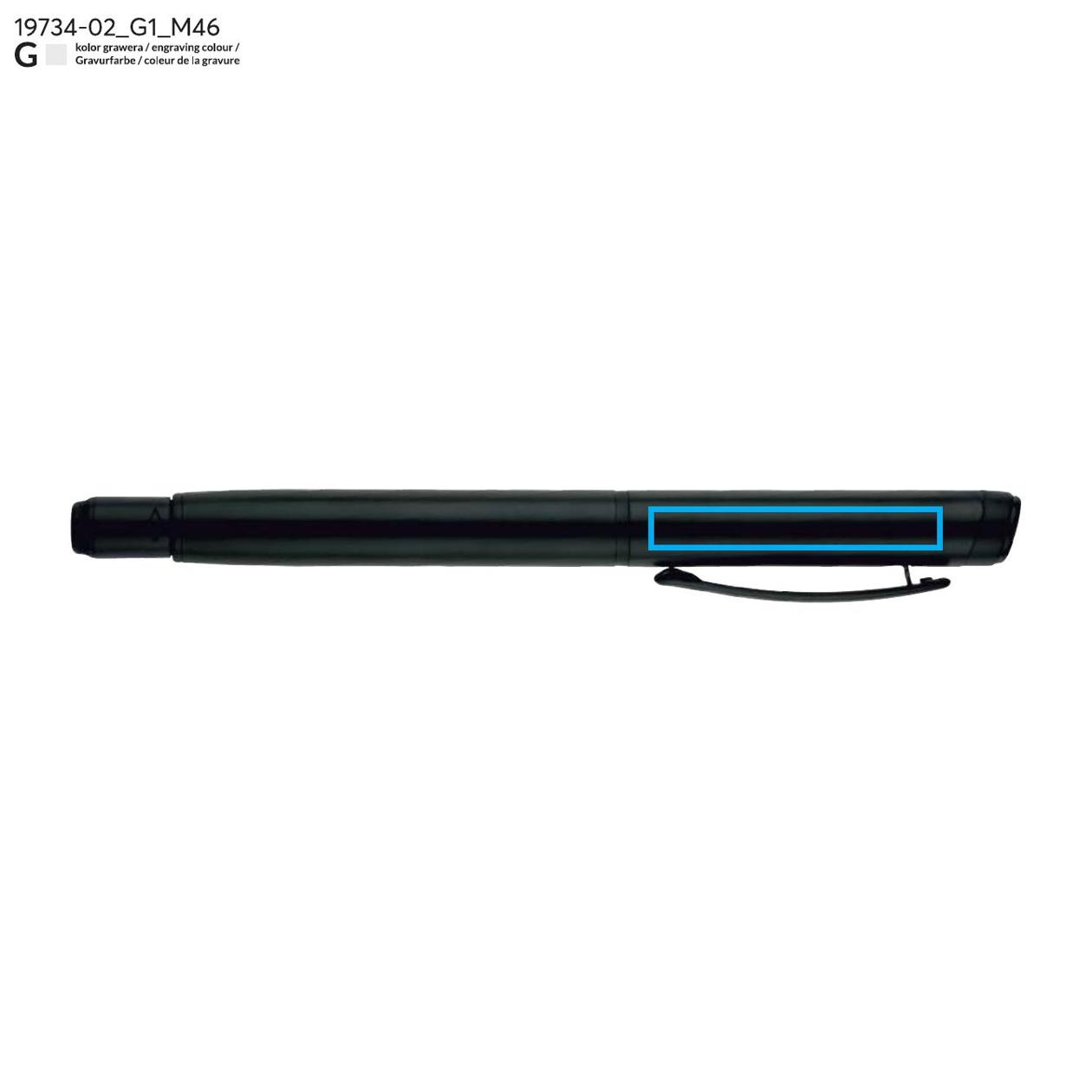 Długopis ROTIS to aluminiowy model z żelowym wkładem typu free ink, zamykany klasyczną zatyczką. Korpus o półmatowym wykończeniu uzupełnia czarny, metalowy klips, który dodaje elegancji. Obrotowa końcówka z wbudowanym spinnerem pełni funkcję antystresową – umieszczona na niej czarna strzałka, wytłoczona w materiale, subtelnie sugeruje kierunek obrotu.