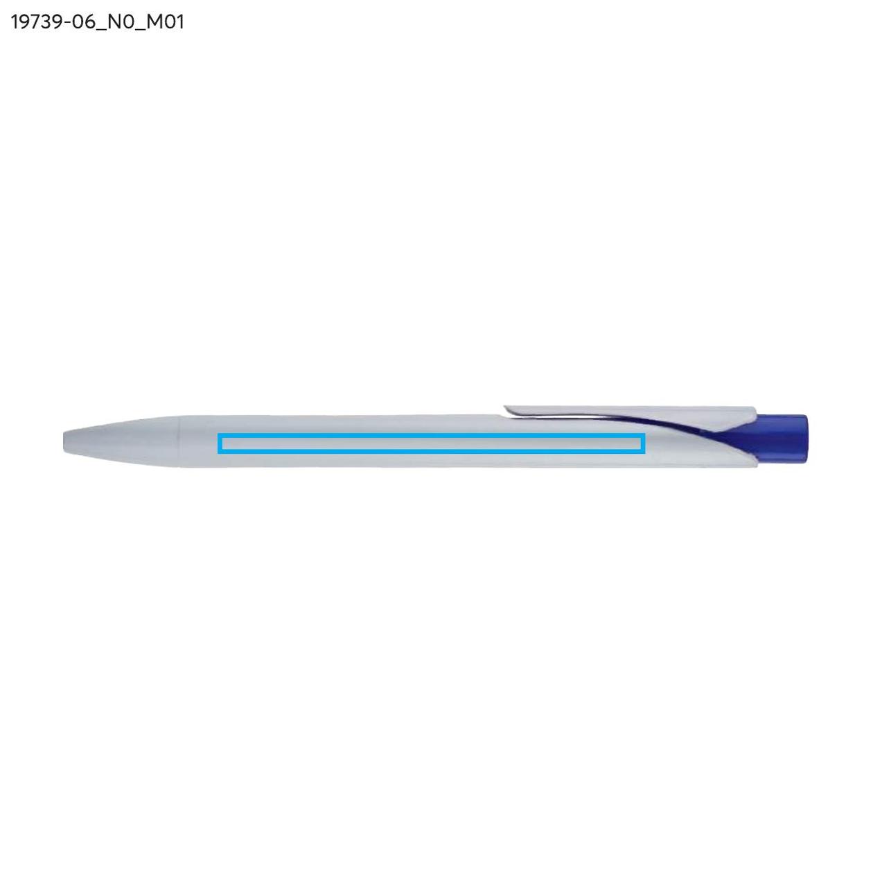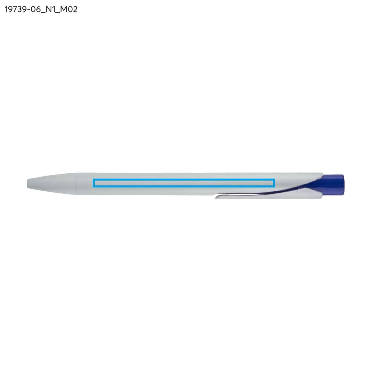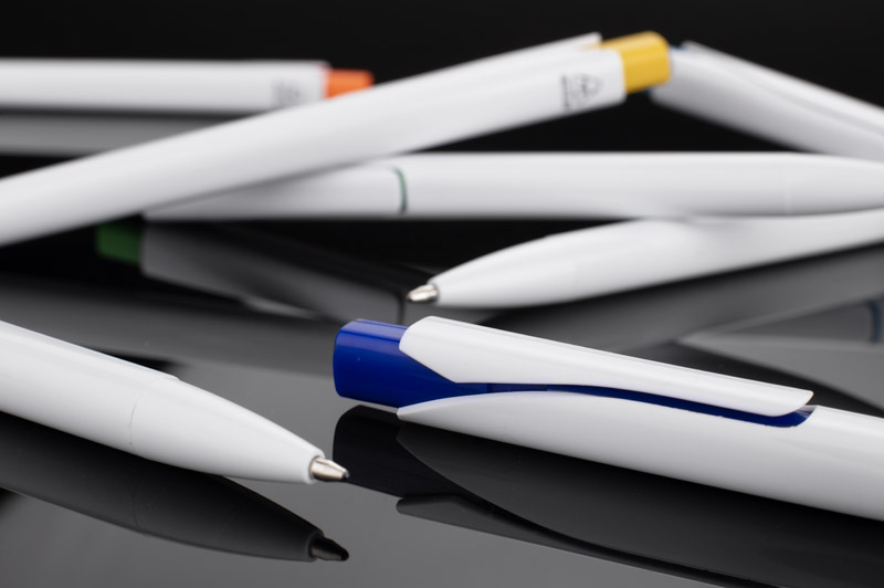 Długopis KLIBO wykonany jest z tworzywa rABS w klasycznym białym kolorze, z lakierowanym wykończeniem. Wyróżnia go kwadratowy, kolorowy przycisk oraz wąski, płaski klip, który pewnie trzyma się dokumentów i notesów. Mechanizm automatyczny zapewnia wygodne użytkowanie, a wkład typu G2 o grubości pisania 1,0 mm gwarantuje płynny i równy zapis. Lekka konstrukcja i nowoczesna forma sprawiają, że KLIBO to praktyczny gadżet reklamowy do codziennego użytku.