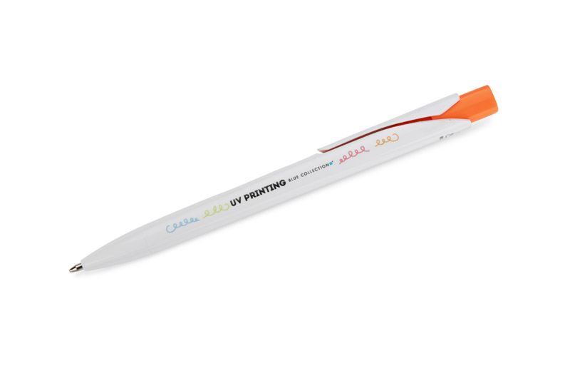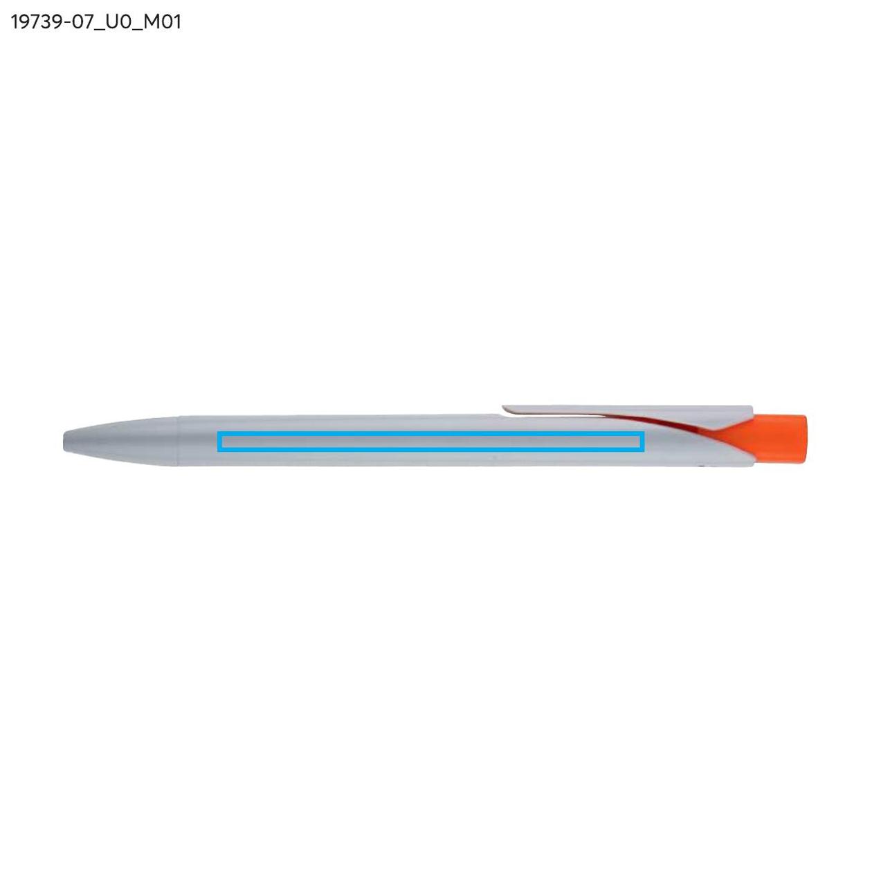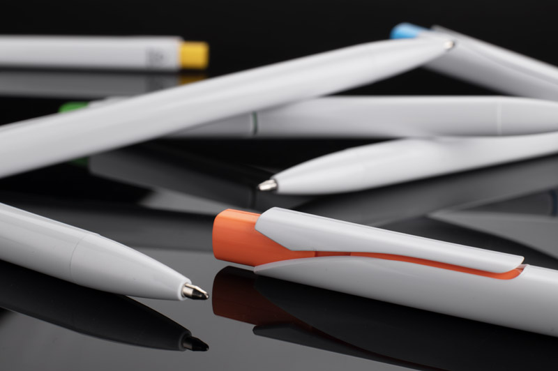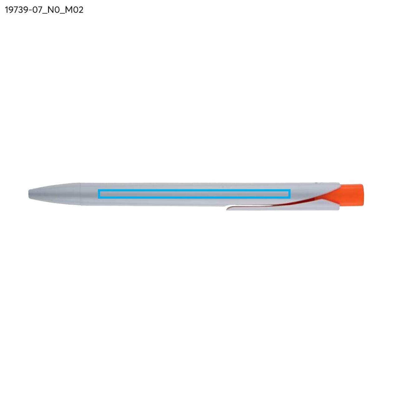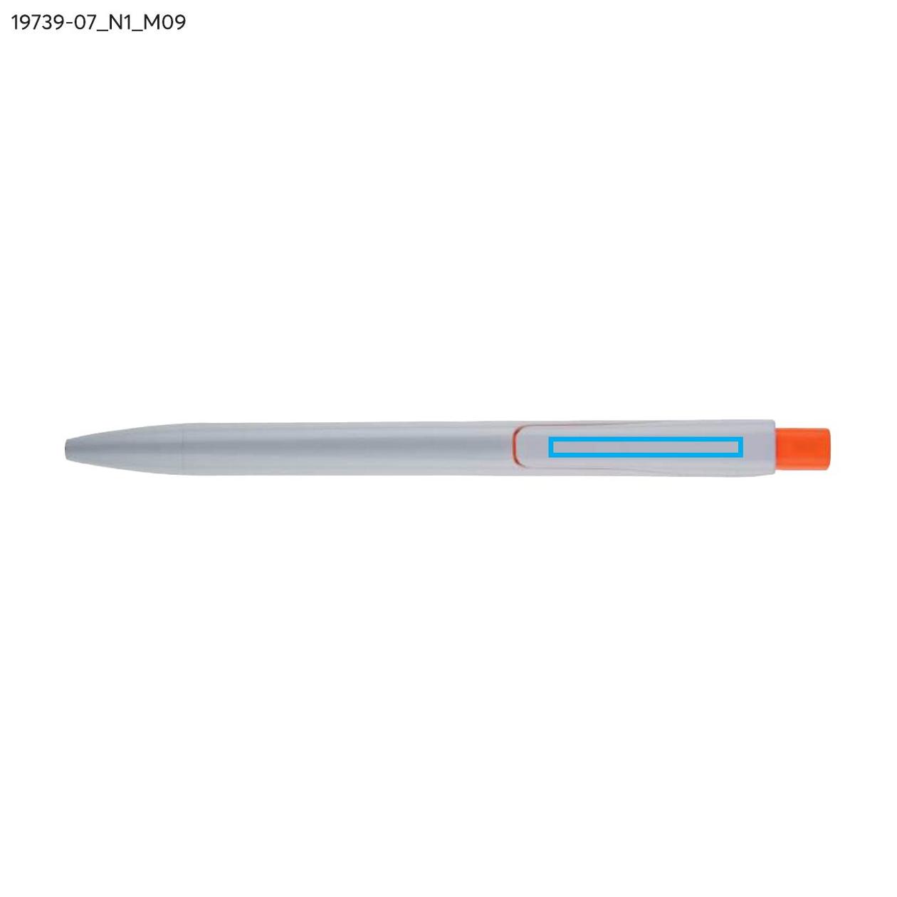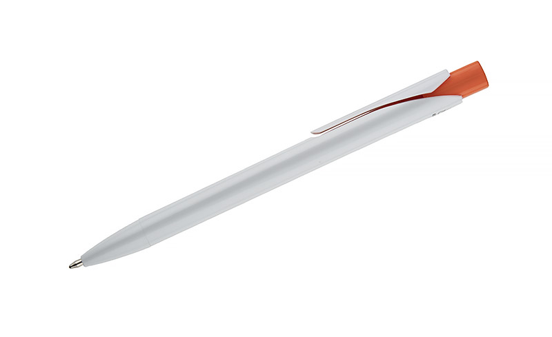 Długopis KLIBO wykonany jest z tworzywa rABS w klasycznym białym kolorze, z lakierowanym wykończeniem. Wyróżnia go kwadratowy, kolorowy przycisk oraz wąski, płaski klip, który pewnie trzyma się dokumentów i notesów. Mechanizm automatyczny zapewnia wygodne użytkowanie, a wkład typu G2 o grubości pisania 1,0 mm gwarantuje płynny i równy zapis. Lekka konstrukcja i nowoczesna forma sprawiają, że KLIBO to praktyczny gadżet reklamowy do codziennego użytku.