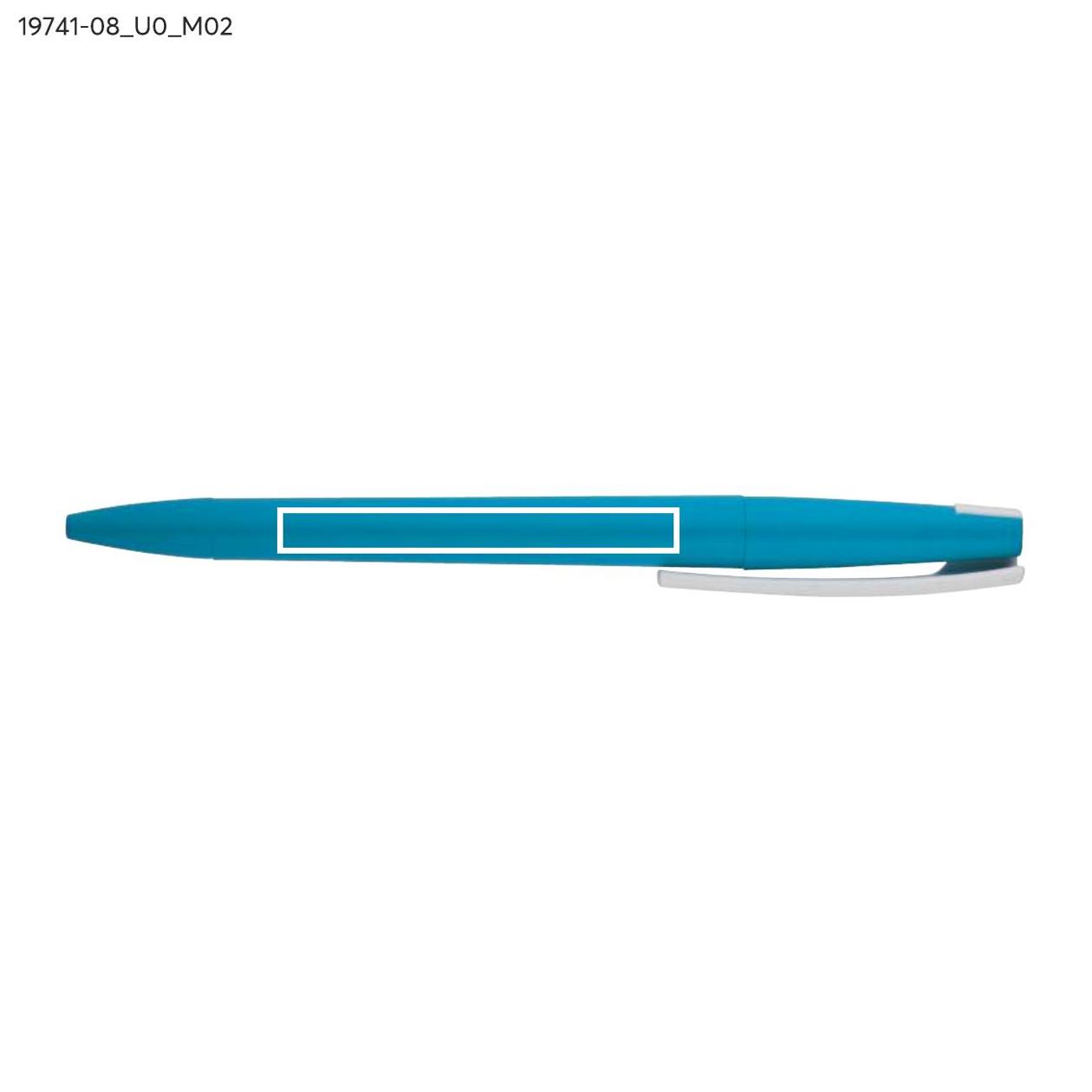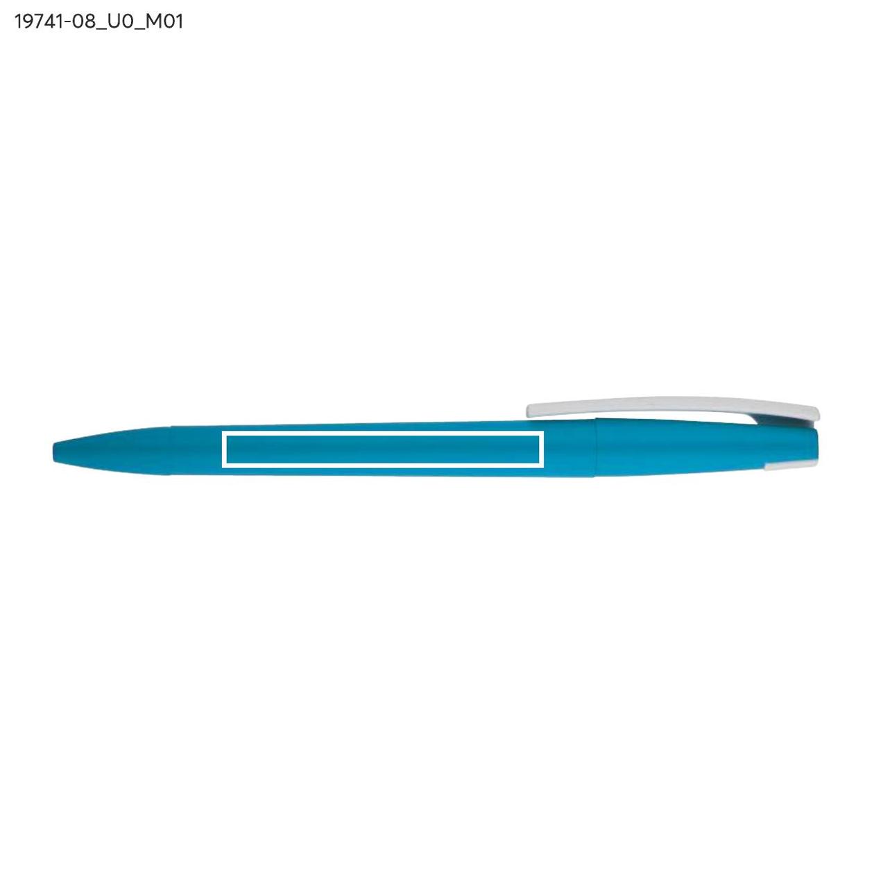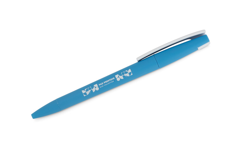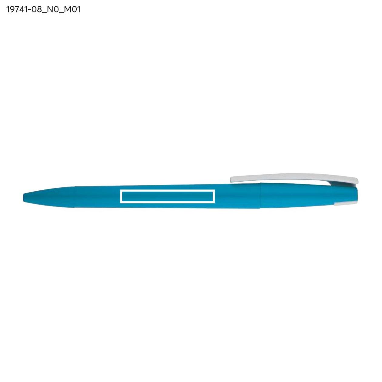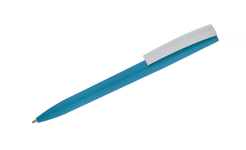 Długopis ZENO wykonany jest z tworzywa o matowym, przyjemnym w dotyku wykończeniu typu soft touch. Jego nowoczesna forma i kontrastujący biały klip nadają mu rozpoznawalny wygląd. Mechanizm przekręcany typu twist umożliwia wygodne wysuwanie wkładu X20 o grubości pisania 1,0 mm. Lekki i poręczny, sprawdzi się w codziennym użytkowaniu, a także jako praktyczny nośnik reklamy z miejscem na logo.