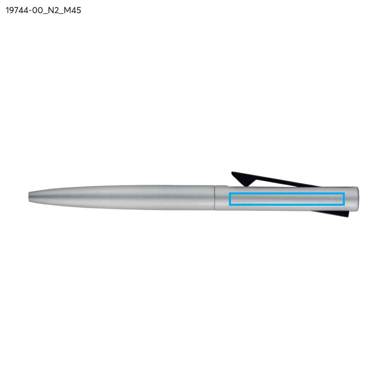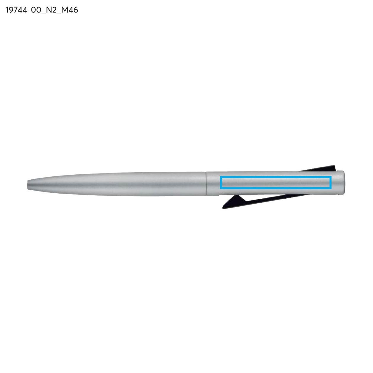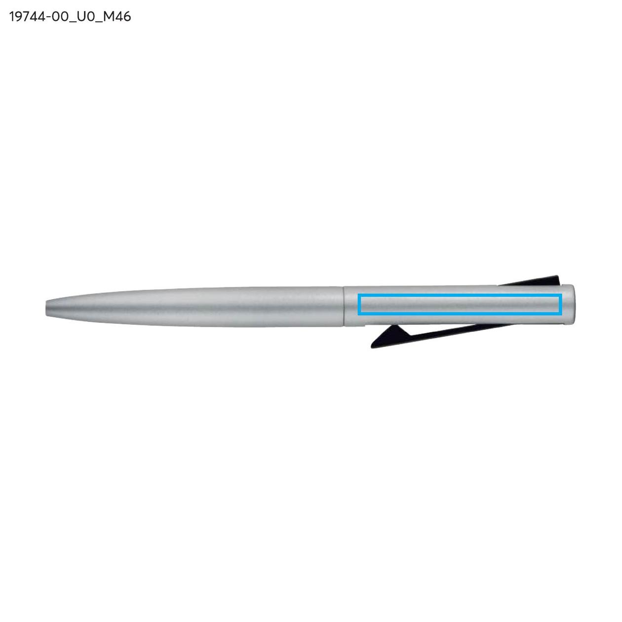Długopis JAKU wykonany jest z recyklingowanego aluminium i wykończony satynową powłoką, która nadaje mu nowoczesny wygląd. Wyposażony w wciskany klips, który pełni również funkcję mechanizmu automatycznego. Wkład typu G2 o grubości pisania 1,0 mm zapewnia miękki i płynny zapis, idealny do codziennego użytku. Lekka konstrukcja i gładka powierzchnia korpusu zwiększają komfort pisania. JAKU to funkcjonalny gadżet reklamowy o subtelnym, technicznym charakterze.