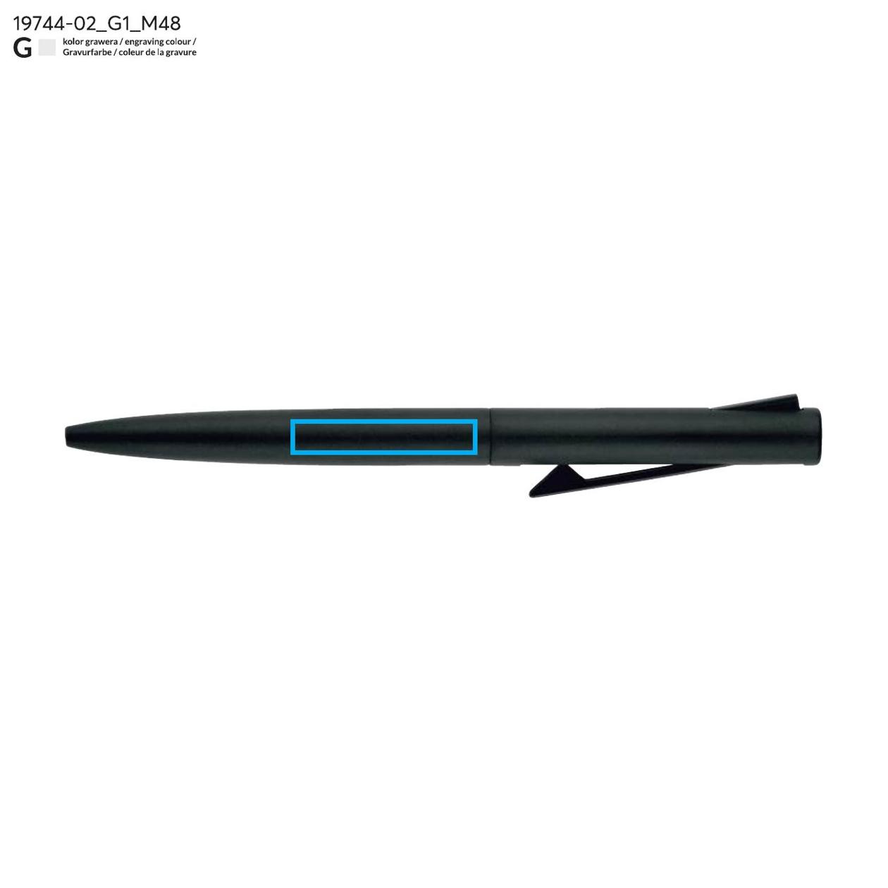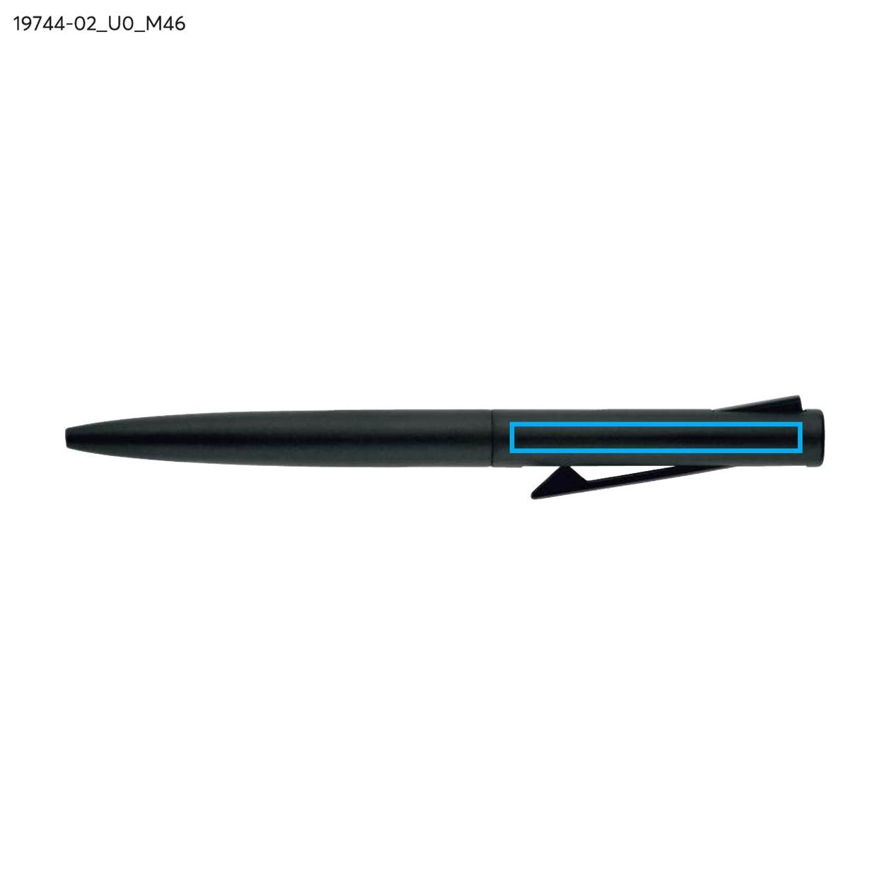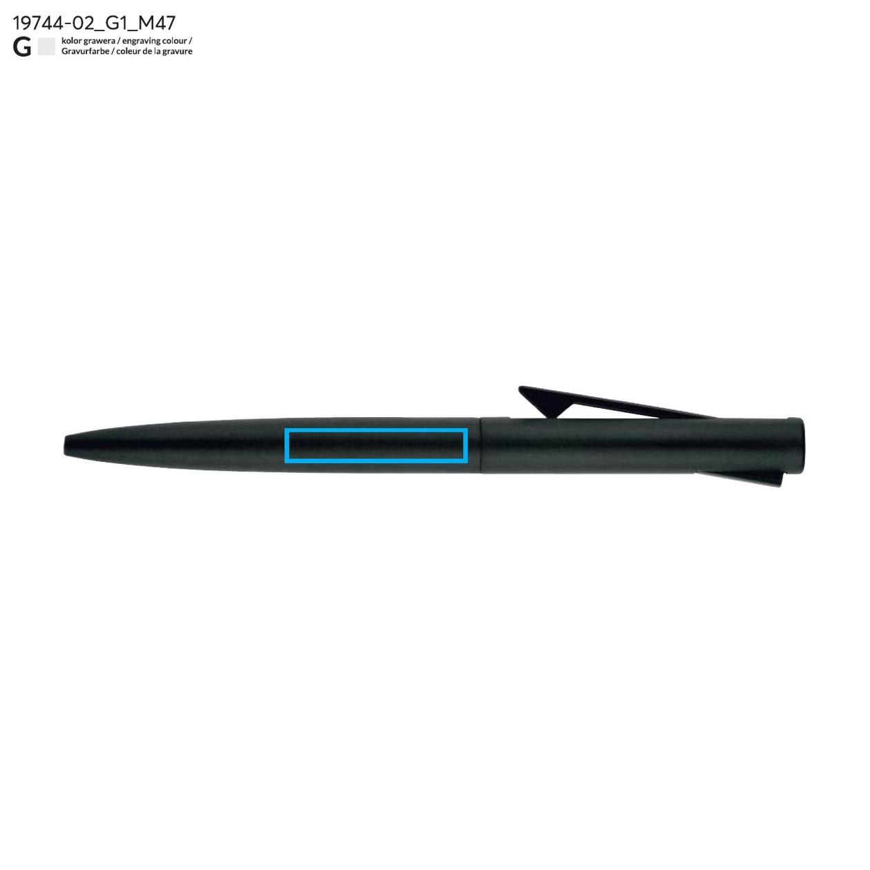 Długopis JAKU wykonany jest z recyklingowanego aluminium i wykończony satynową powłoką, która nadaje mu nowoczesny wygląd. Wyposażony w wciskany klips, który pełni również funkcję mechanizmu automatycznego. Wkład typu G2 o grubości pisania 1,0 mm zapewnia miękki i płynny zapis, idealny do codziennego użytku. Lekka konstrukcja i gładka powierzchnia korpusu zwiększają komfort pisania. JAKU to funkcjonalny gadżet reklamowy o subtelnym, technicznym charakterze.