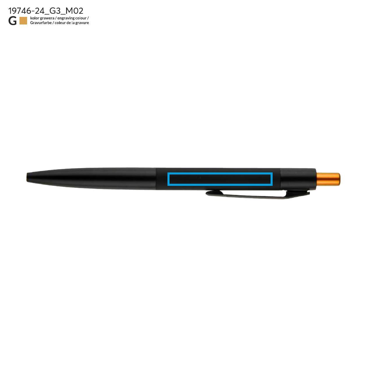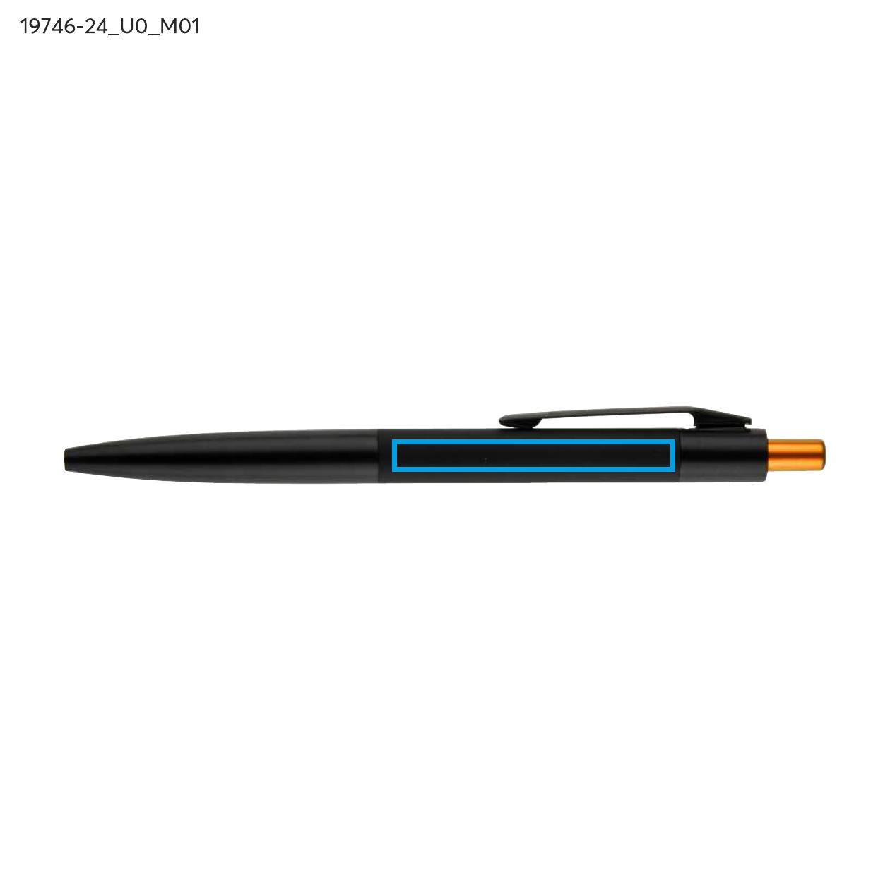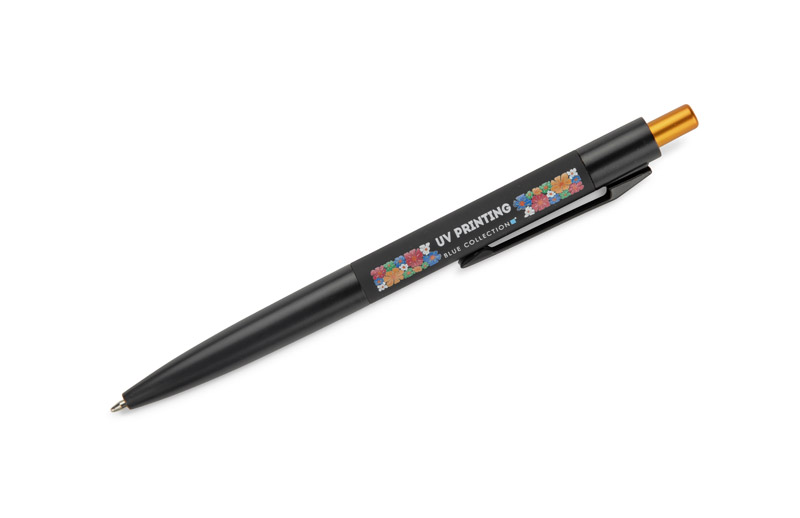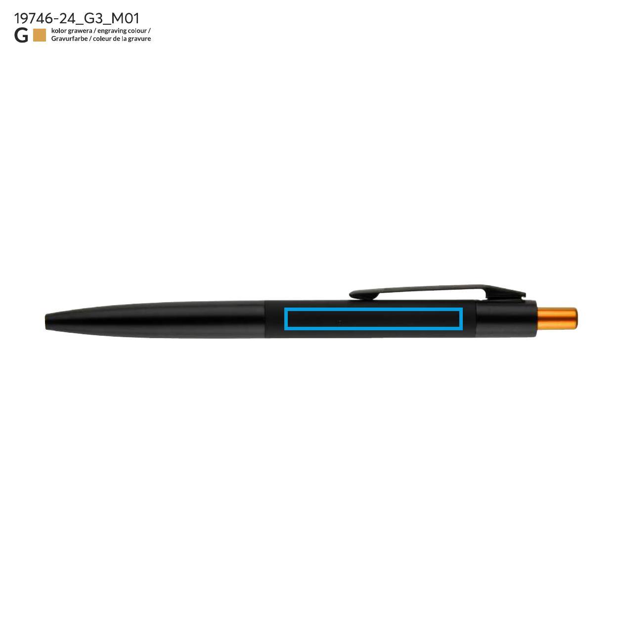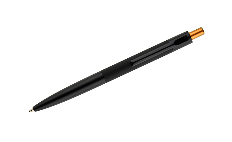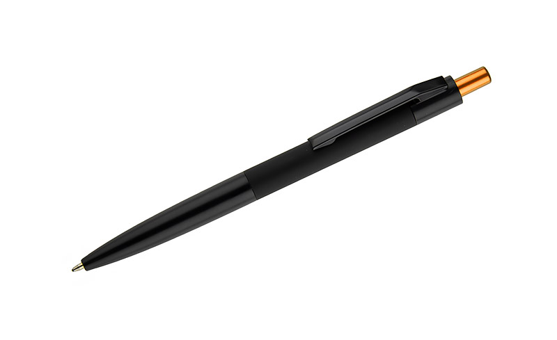 Długopis PAUL to elegancki model o klasycznej formie i lakierowanym wykończeniu. Czarny korpus uzupełnia kolorowy przycisk oraz efektowne, lustrzane logo, które staje się widoczne po wykonaniu graweru. Mechanizm automatyczny ułatwia codzienne użytkowanie, a wkład typu X20 z tuszem o grubości pisania 0,7 mm zapewnia płynny, równy zapis. Połączenie połysku i kontrastowych detali nadaje długopisowi nowoczesny charakter, idealny do znakowania reklamowego.
