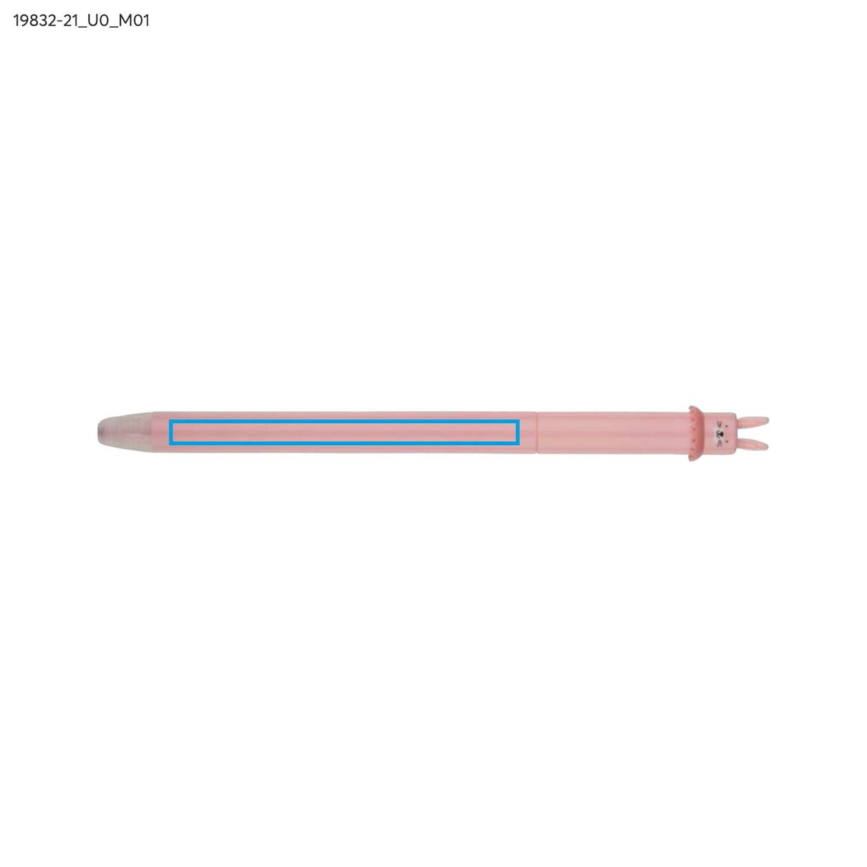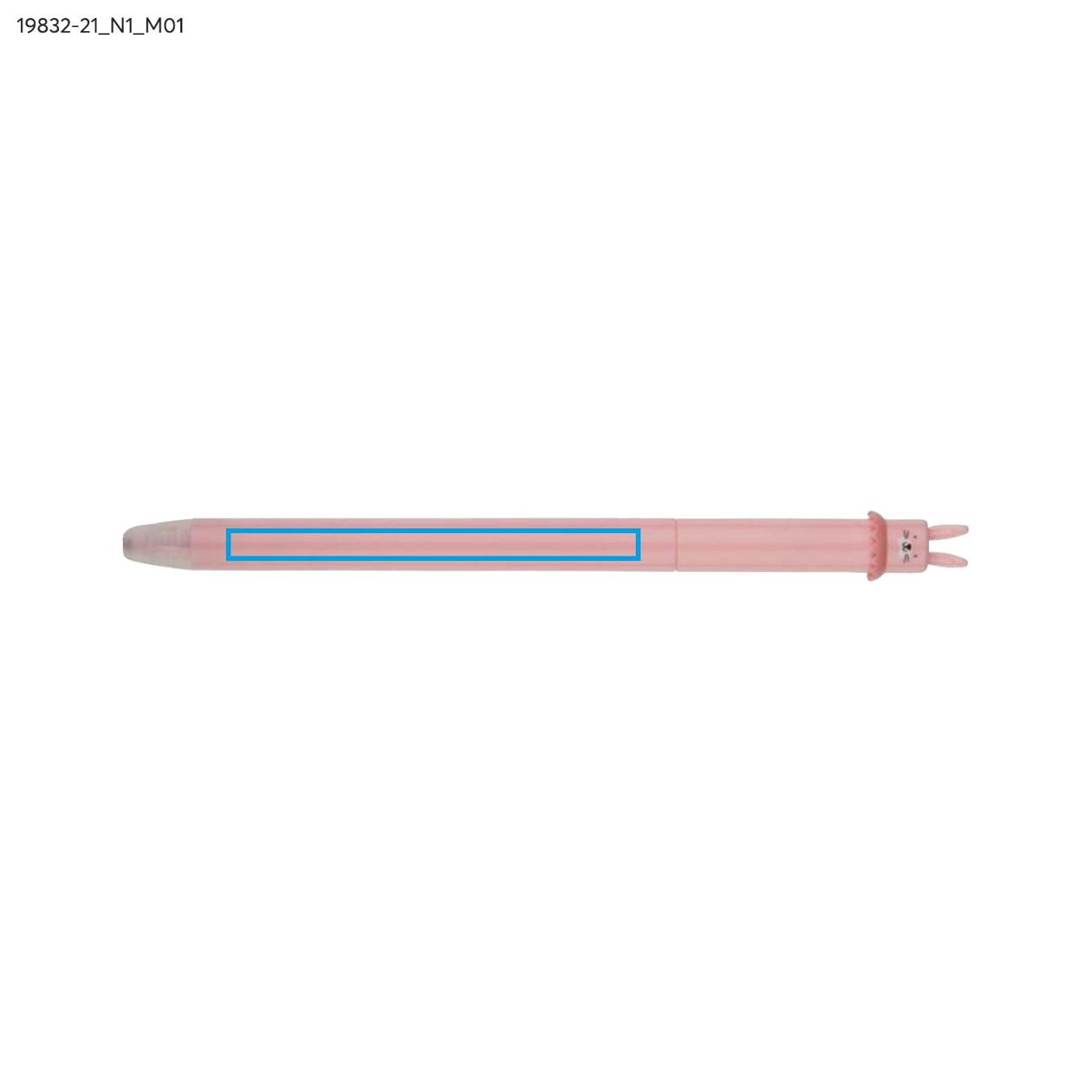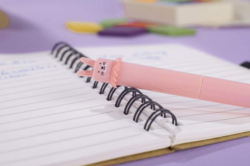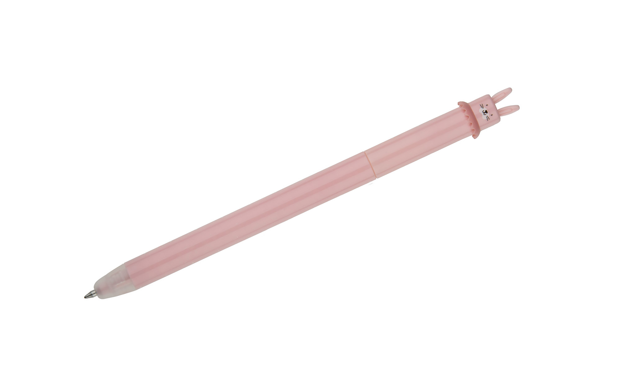 Długopis ANIMAL z motywem królika wyróżnia się lekko humorystycznym stylem i przyjemnym w dotyku, lakierowanym wykończeniem. Korpus w odcieniu zieleni oraz nasadka w kształcie królika nadają mu wyjątkowy charakter. Mechanizm przekręcany typu twist umożliwia łatwe wysuwanie żelowego wkładu (0,5 mm), który gwarantuje płynne i równomierne pisanie. To praktyczny i zabawny gadżet, który wnosi odrobinę luzu do codziennych obowiązków.