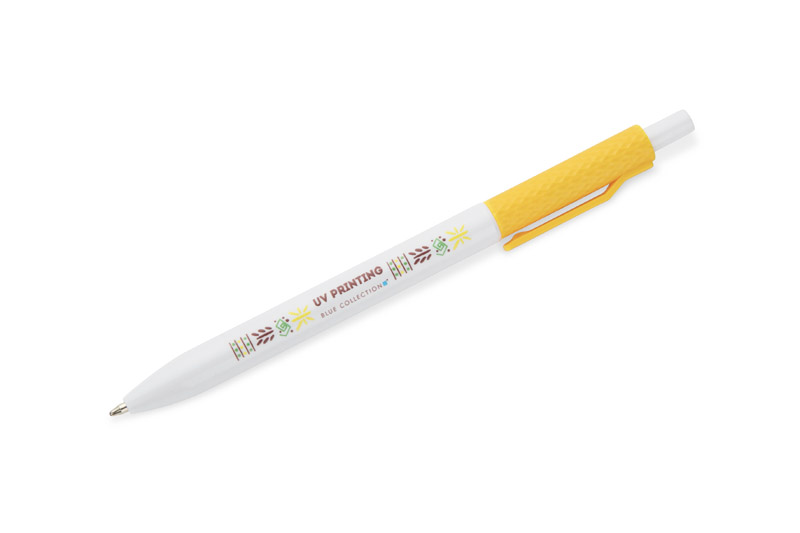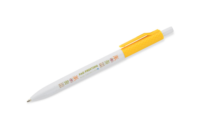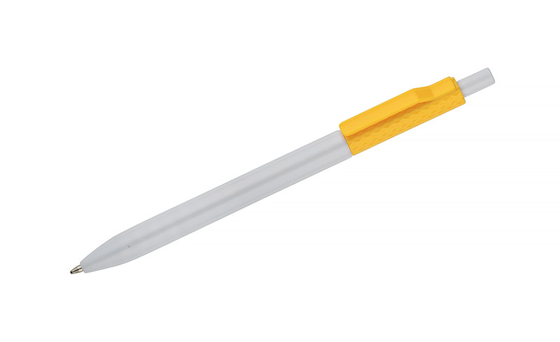 Długopis KARBI wykonany jest z tworzywa i wykończony błyszczącym lakierem. Jego charakterystycznym elementem jest karbowana struktura górnej części korpusu oraz klip w tym samym kolorze, tworzące spójną całość. Mechanizm automatyczny zapewnia wygodę użytkowania, a wkład typu X20 o grubości pisania 1,0 mm gwarantuje płynny zapis. Prosty i nowoczesny design sprawia, że KARBI to praktyczny gadżet reklamowy, idealny do codziennego użytku i znakowania logo.