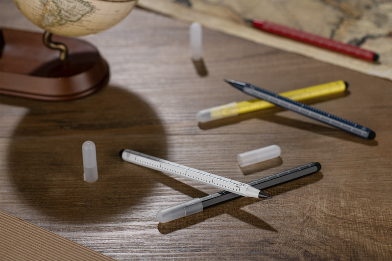 Ołówek wieczny DRAWI to praktyczny gadżet reklamowy wykonany z recyklingowanego aluminium z lakierowanym wykończeniem. Wyposażony w miarkę o długości 11 cm z podziałką w centymetrach i calach oraz touch pen, sprawdzi się w biurze, branży technicznej i budowlanej. Sześciokątny korpus zapewnia wygodny chwyt i zapobiega staczaniu się ołówka ze stołu. Zatyczka z tworzywa chroni końcówkę, co podnosi komfort użytkowania. Kompaktowy format sprawia, że DRAWI jest zawsze pod ręką i stanowi solidny nośnik reklamy dzięki możliwości znakowania.