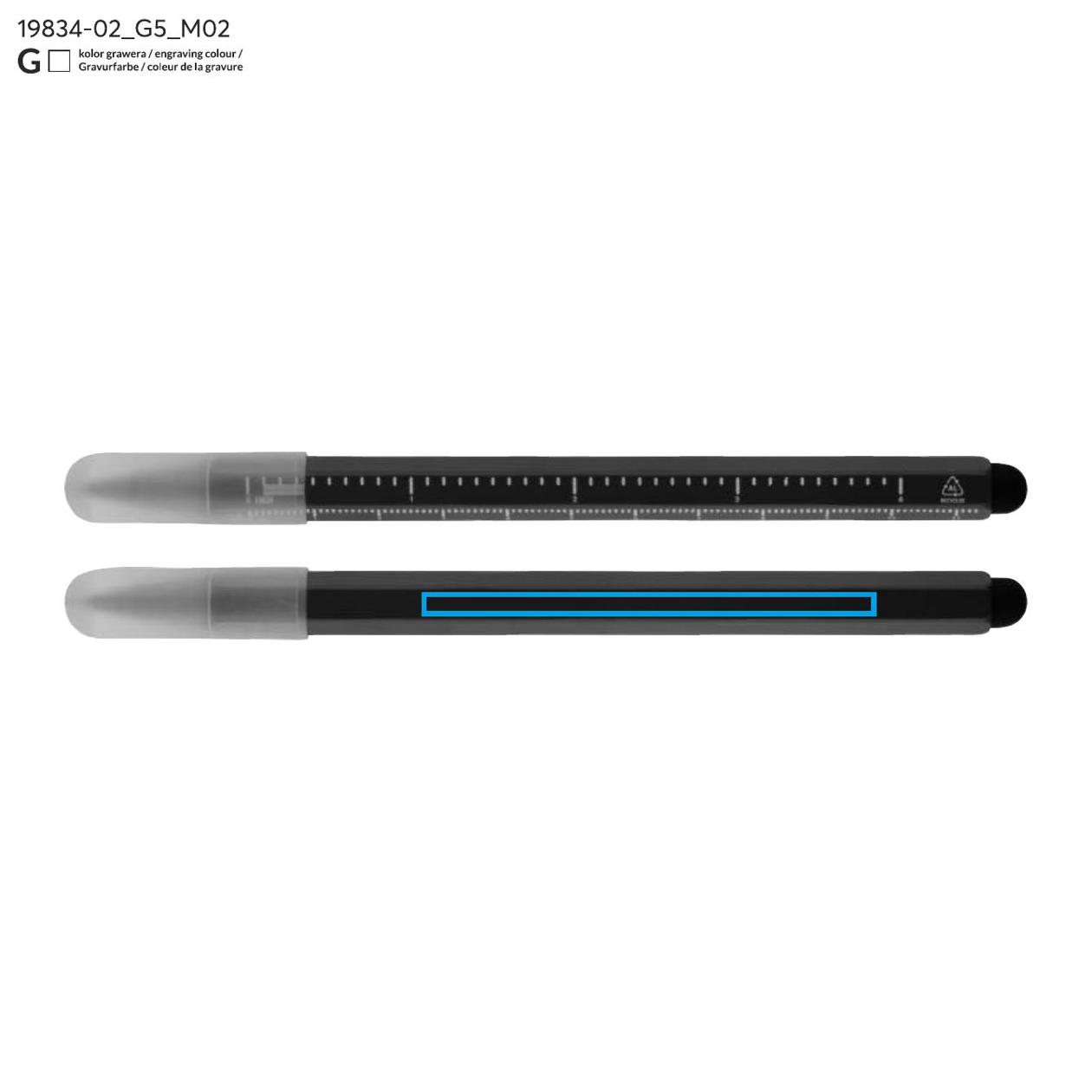 Ołówek wieczny DRAWI to praktyczny gadżet reklamowy wykonany z recyklingowanego aluminium z lakierowanym wykończeniem. Wyposażony w miarkę o długości 11 cm z podziałką w centymetrach i calach oraz touch pen, sprawdzi się w biurze, branży technicznej i budowlanej. Sześciokątny korpus zapewnia wygodny chwyt i zapobiega staczaniu się ołówka ze stołu. Zatyczka z tworzywa chroni końcówkę, co podnosi komfort użytkowania. Kompaktowy format sprawia, że DRAWI jest zawsze pod ręką i stanowi solidny nośnik reklamy dzięki możliwości znakowania.