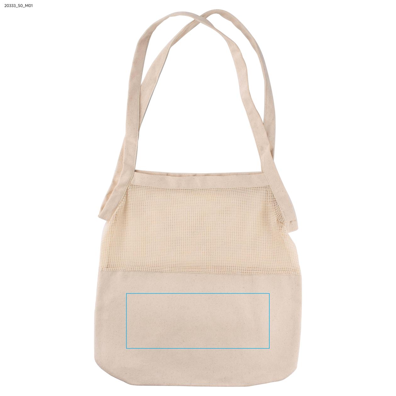 Torba na zakupy NETI jest wykonana z bawełny o wysokiej gramaturze 280 g/m. Torba posiada długie uszy pozwalające na noszenie jej na ramieniu. Połączenie dwóch struktur materiałów daje efektowny i modny wygląd.
