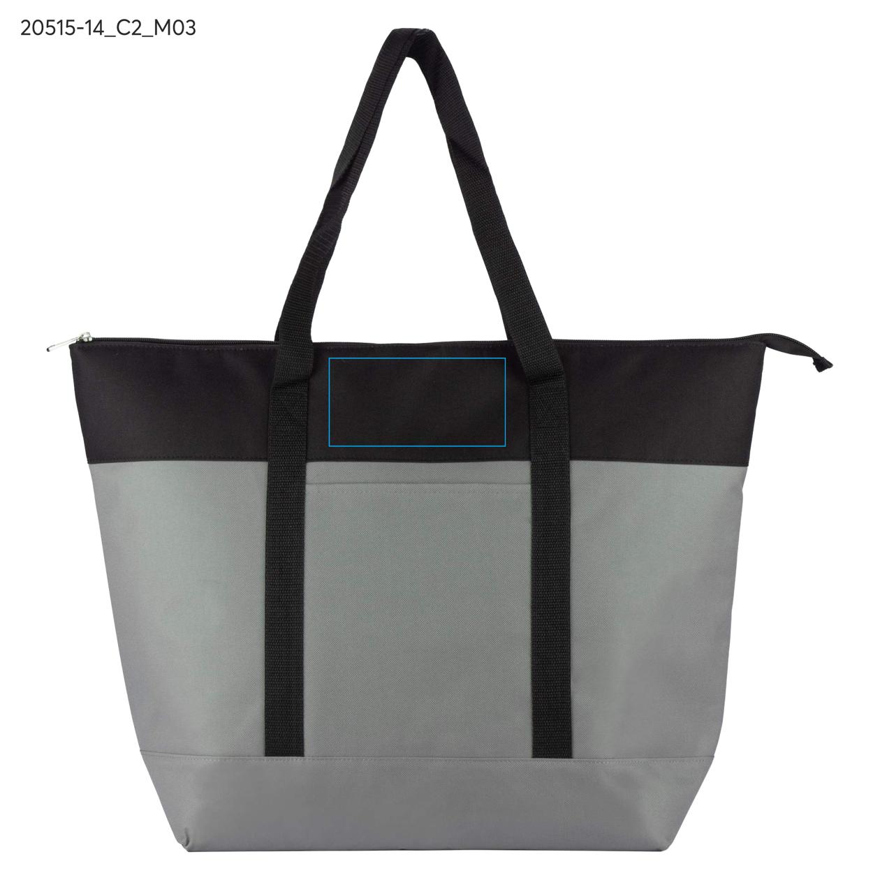 Pojemna torba jednokomorowa na zakupy posiadająca warstwę izolacji termicznej, dzięki czemu dłużej utrzymuje temperaturę produktów. Wykonana z poliestru, posiada zewnętrzną kieszeń. Zastosowana izolacja z pianki EPE pokryta powłoką PEVA.