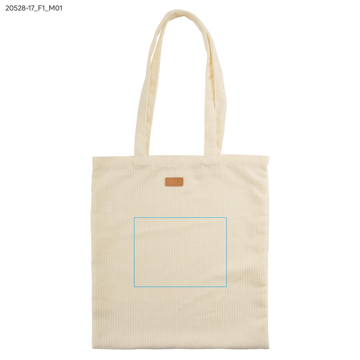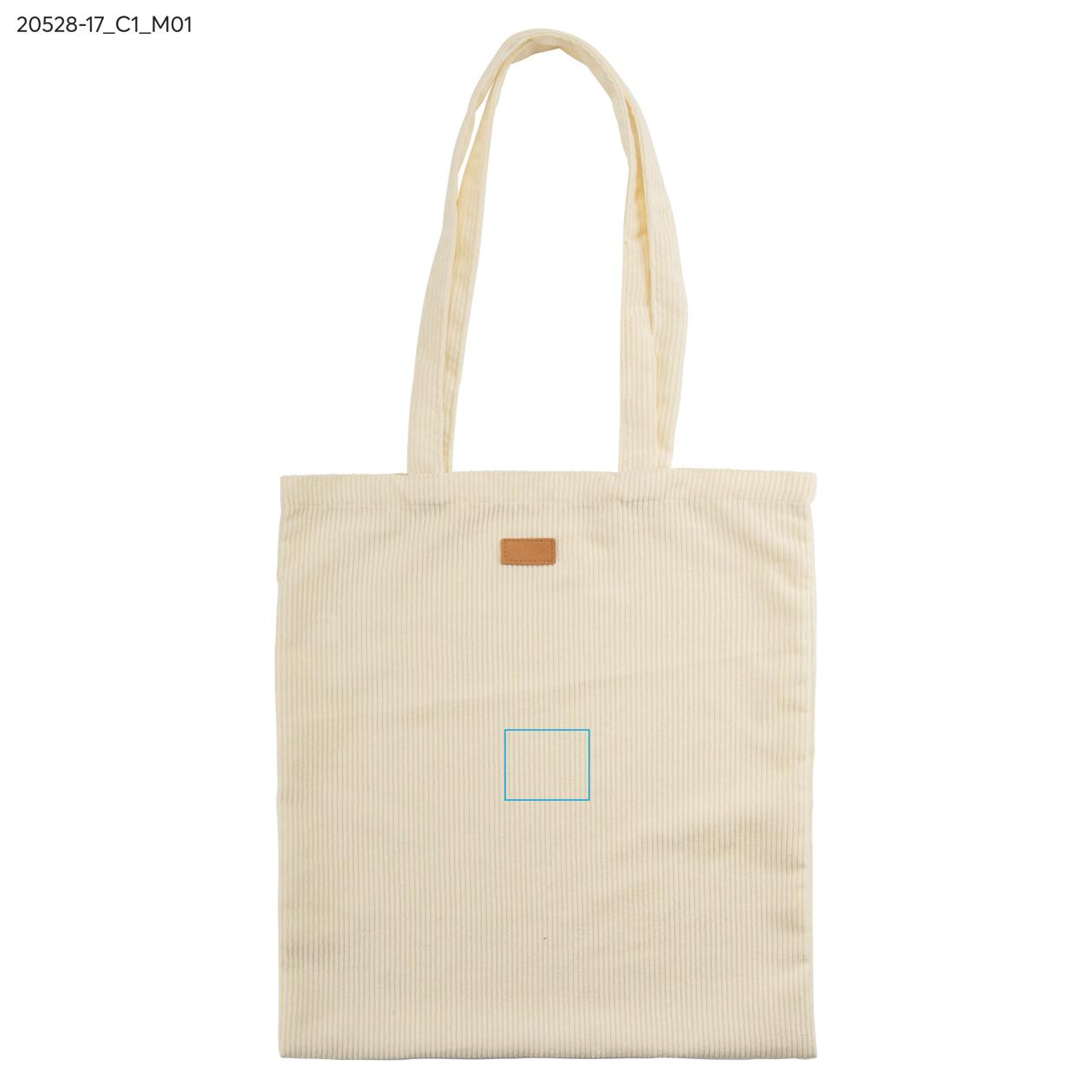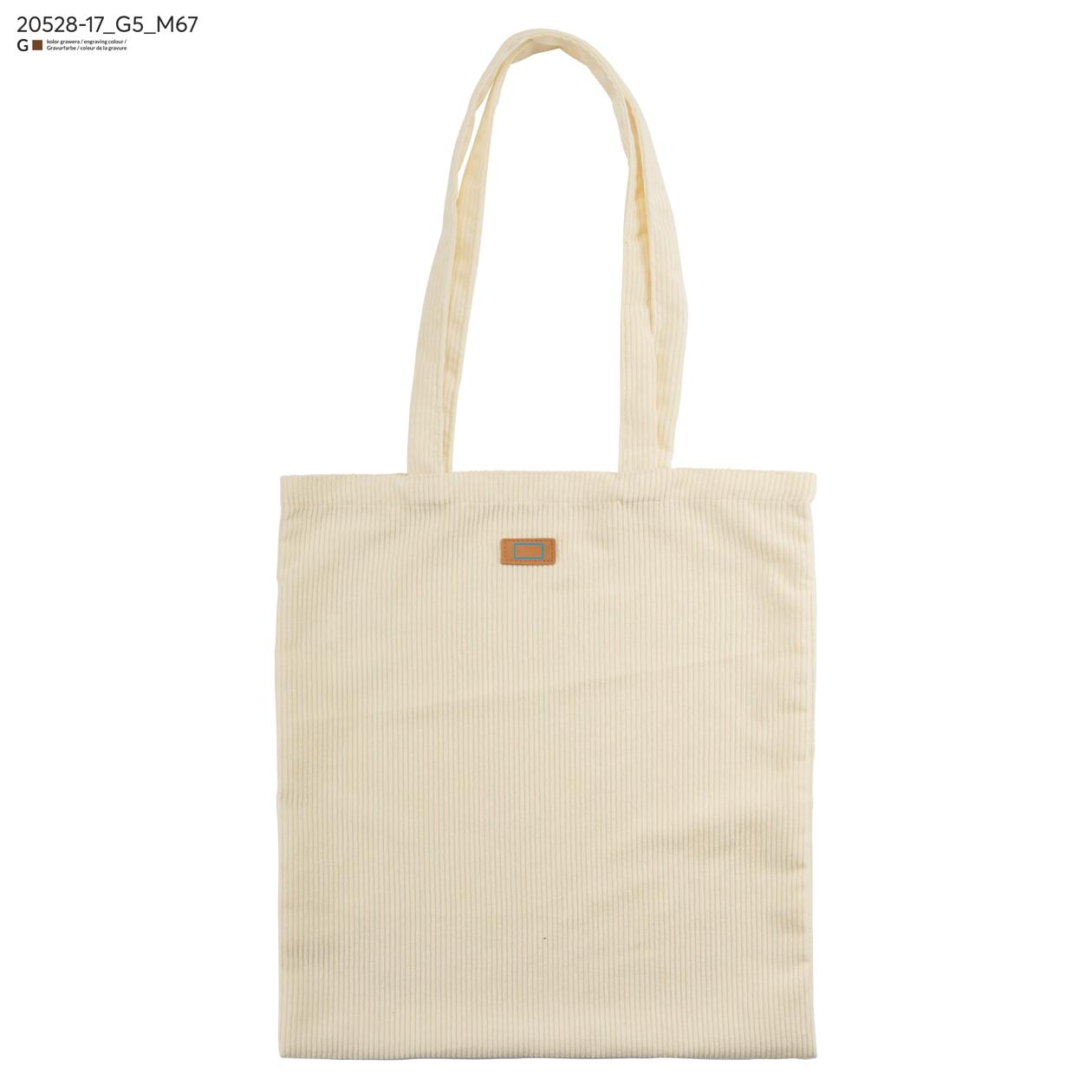 Torba CORDELLA wykonana z tkaniny przypominającej sztruks łączy miękkość z wytrzymałością i modnym wyglądem w stylu vintage. Długie uchwyty umożliwiają wygodne noszenie na ramieniu, a lekka konstrukcja sprawia, że doskonale sprawdza się jako torba na zakupy lub codzienna torba miejska. Wszyta naszywka przeznaczona do znakowania pozwala na subtelne umieszczenie logo. To praktyczny i stylowy model o uniwersalnym zastosowaniu.