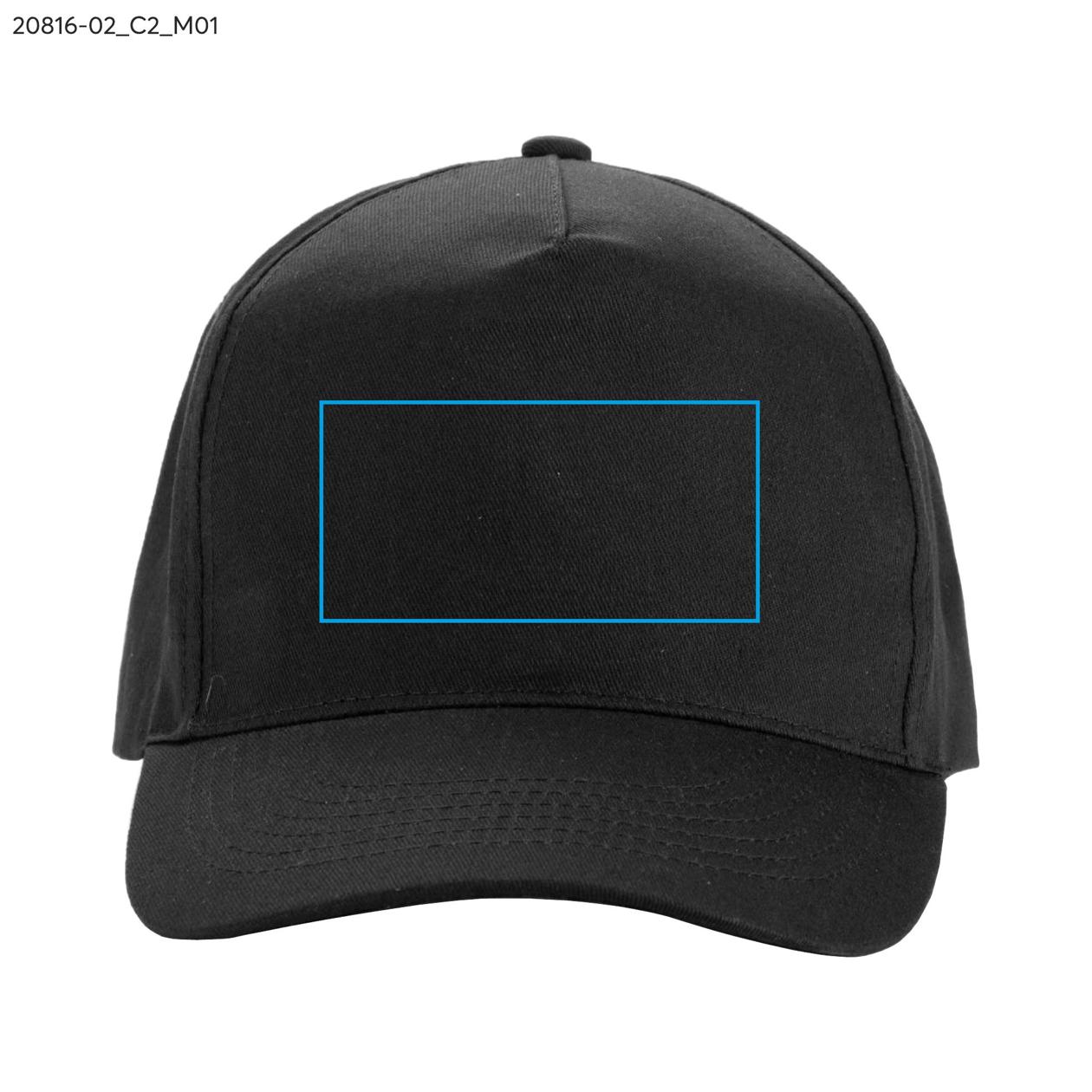 Czapka materiałowa TORI wykonana jest z bawełnianego twillu o gramaturze 150 g/m², który dobrze układa się na głowie i sprawdza się w codziennym użytkowaniu. Model składa się z 5 paneli, posiada usztywniany przód, profilowany daszek oraz regulowane zapięcie na rzep, które umożliwia łatwe dopasowanie. TORI to praktyczny gadżet reklamowy – idealny na eventy, akcje promocyjne i na co dzień.