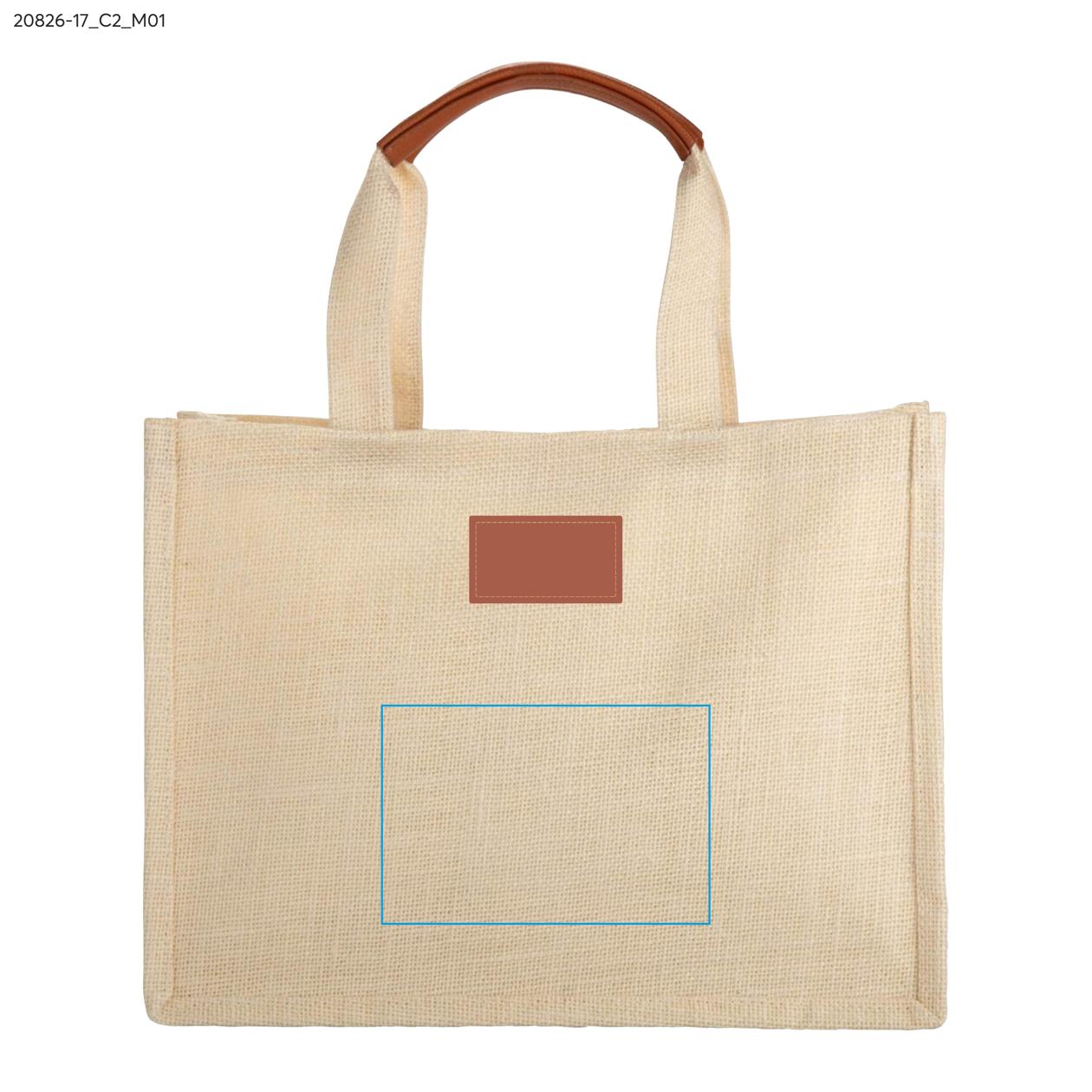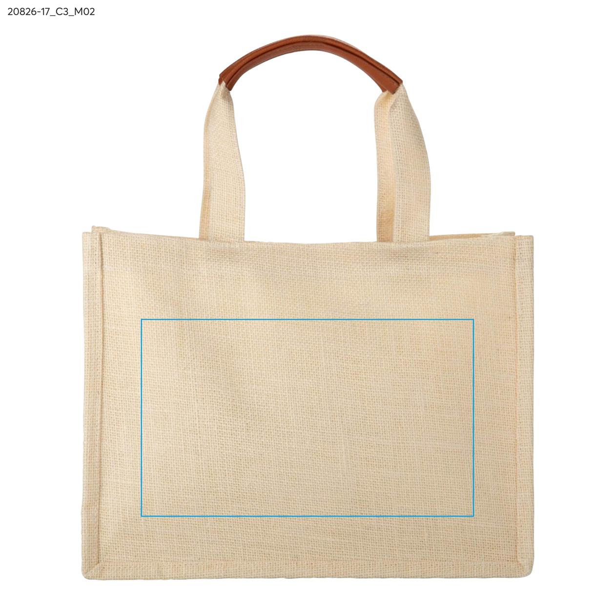 Torba jutowa JUNA to mniejsza wersja klasycznej torby plażowej – lekka, poręczna i idealna na letnie dni. Sprawdzi się jako mała torba na zakupy lub codzienna torebka o naturalnym charakterze. Wnętrze z podszewką i praktyczną kieszonką na zamek ułatwia organizację drobiazgów, a krótkie, płaskie uchwyty wzmocnione materiałem skóropodobnym (PU) zapewniają wygodne noszenie. Naturalna faktura juty i prosty nadruk nadają jej wakacyjnego stylu.