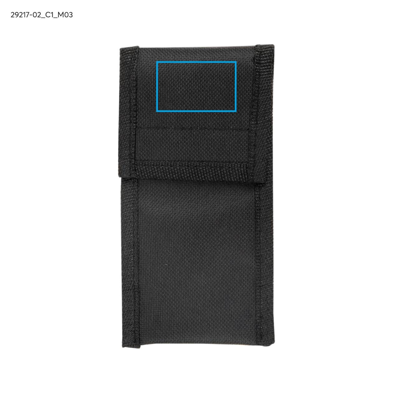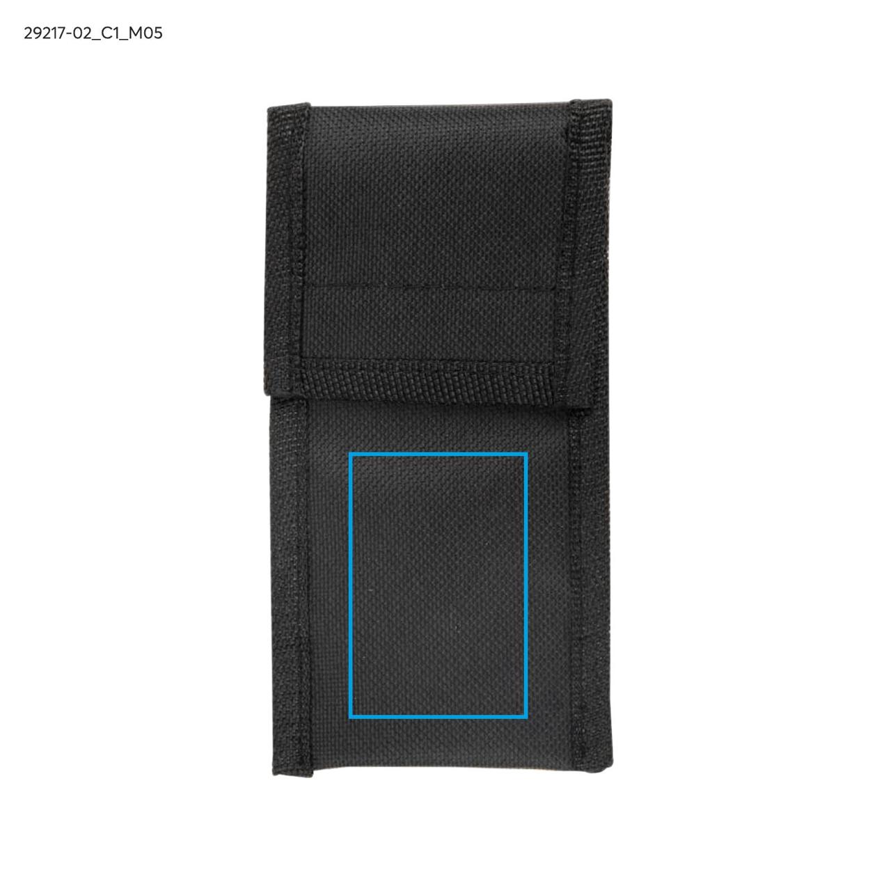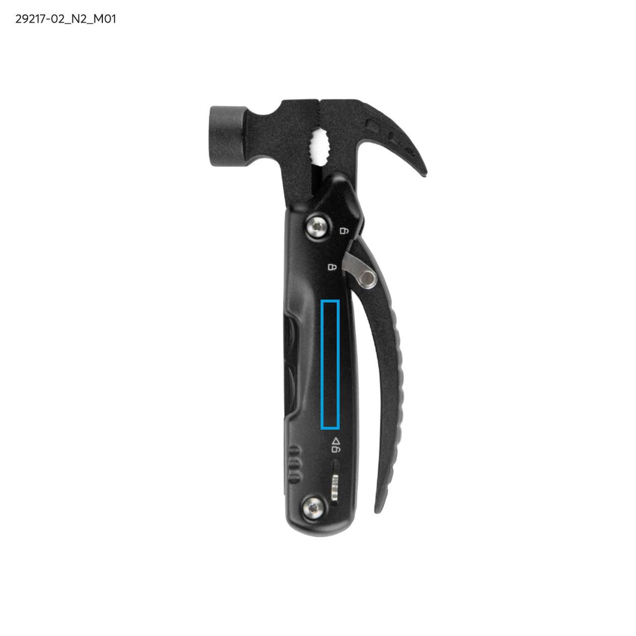 Zestaw narzędzi ZAXO to praktyczne połączenie latarki i wielofunkcyjnego multitoola, które sprawdzi się w różnych sytuacjach – w domu, warsztacie czy podczas podróży. Multitool wyposażony jest w niezbędne akcesoria: młotek, piłę, nóż, śrubokręt krzyżakowy, otwieracz do piwa, piłę dwurzędową oraz kombinerki. Dzięki kompaktowej formie wszystkie narzędzia są zawsze pod ręką. Latarka stanowi przydatne uzupełnienie zestawu, zwiększając jego uniwersalność. Całość zapakowana w kartonik, co czyni ZAXO także dobrym wyborem na praktyczny upominek reklamowy.