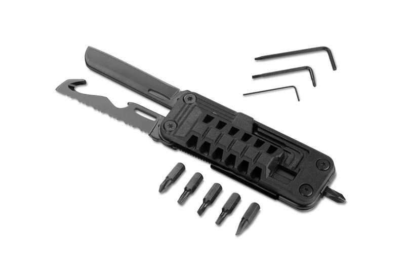 Zestaw narzędzi BITLY to kompaktowy multitool, który sprawdzi się w codziennych sytuacjach i drobnych naprawach. W jednej obudowie mieści praktyczne wyposażenie: śrubokręty, otwieracz do butelek, piłę oraz nóż. Dzięki niewielkim wymiarom i składanej konstrukcji narzędzie jest łatwe do przenoszenia i zawsze pod ręką. Idealny jako drobny upominek dla klientów lub element praktycznego zestawu promocyjnego.