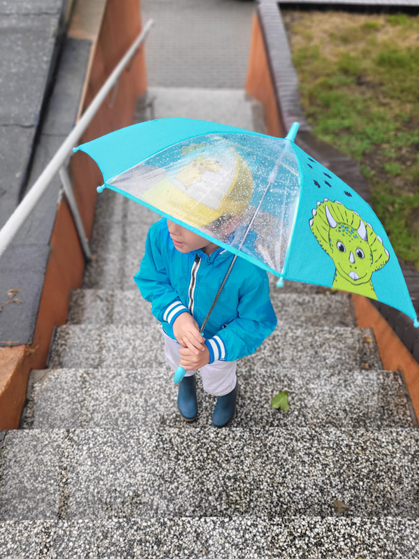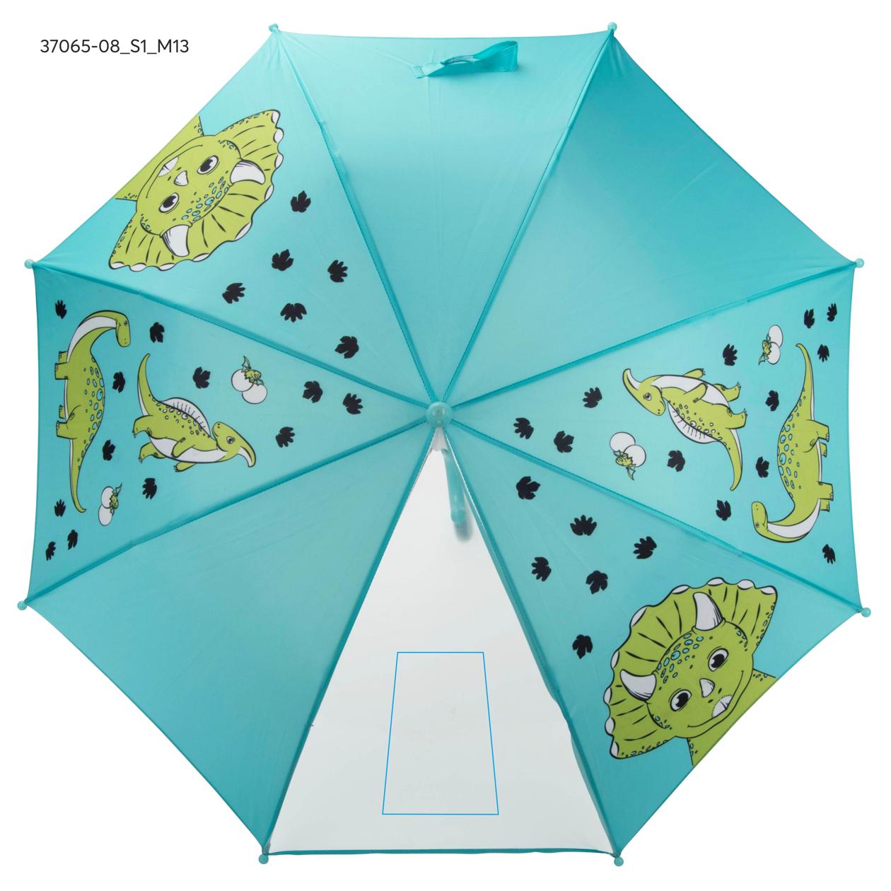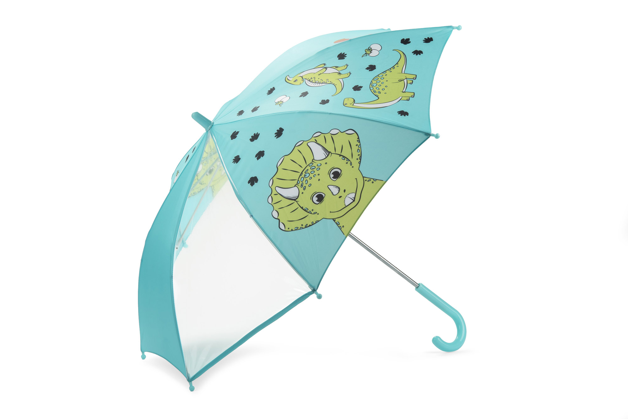 Parasol dziecięcy DINO to kolorowy i lekki model stworzony z myślą o najmłodszych. Wykonany z wytrzymałego poliestru 190T, posiada konstrukcję z włókna szklanego i metalu, która zapewnia trwałość i odporność na wiatr. Osiem paneli ozdobionych wesołym motywem dinozaura przyciąga uwagę, a przezroczysty fragment daszka ułatwia dziecku widoczność podczas spaceru. Parasol otwierany jest manualnie i wyposażony w zaokrąglone zakończenia dla bezpieczeństwa. Idealny jako praktyczny gadżet dla dziecięcych marek lub przedszkoli.