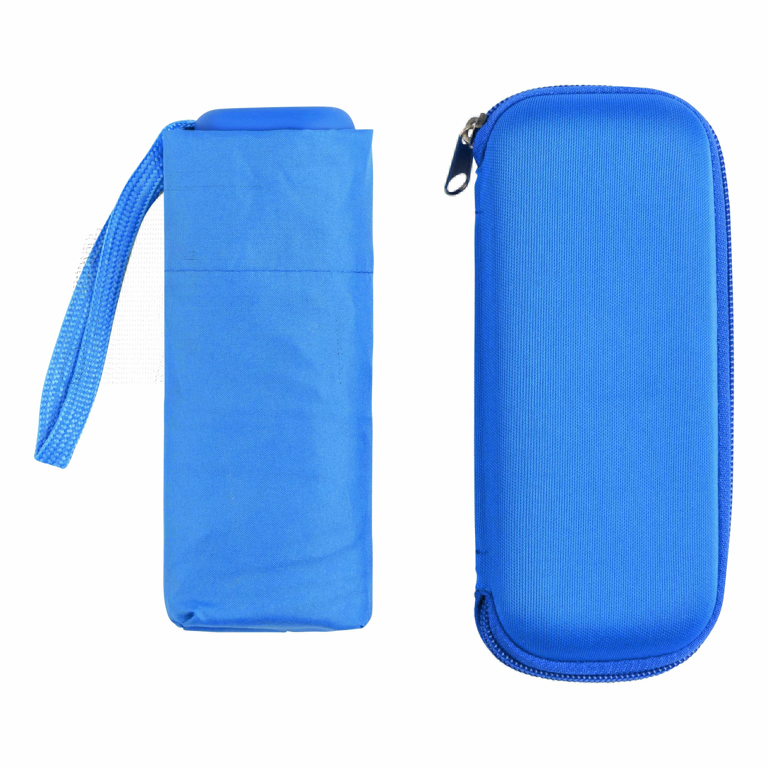 Lekki, super-mini parasol POCKET z etui EVA. Poszycie z poliestru pongee, długość po złożeniu 16 cm, aluminiowe szyny z segmentami z włókna szklanego, aluminiowy stelaż, tylko 164 g, 5 x składana aluminiowa laska, 6 klinów.