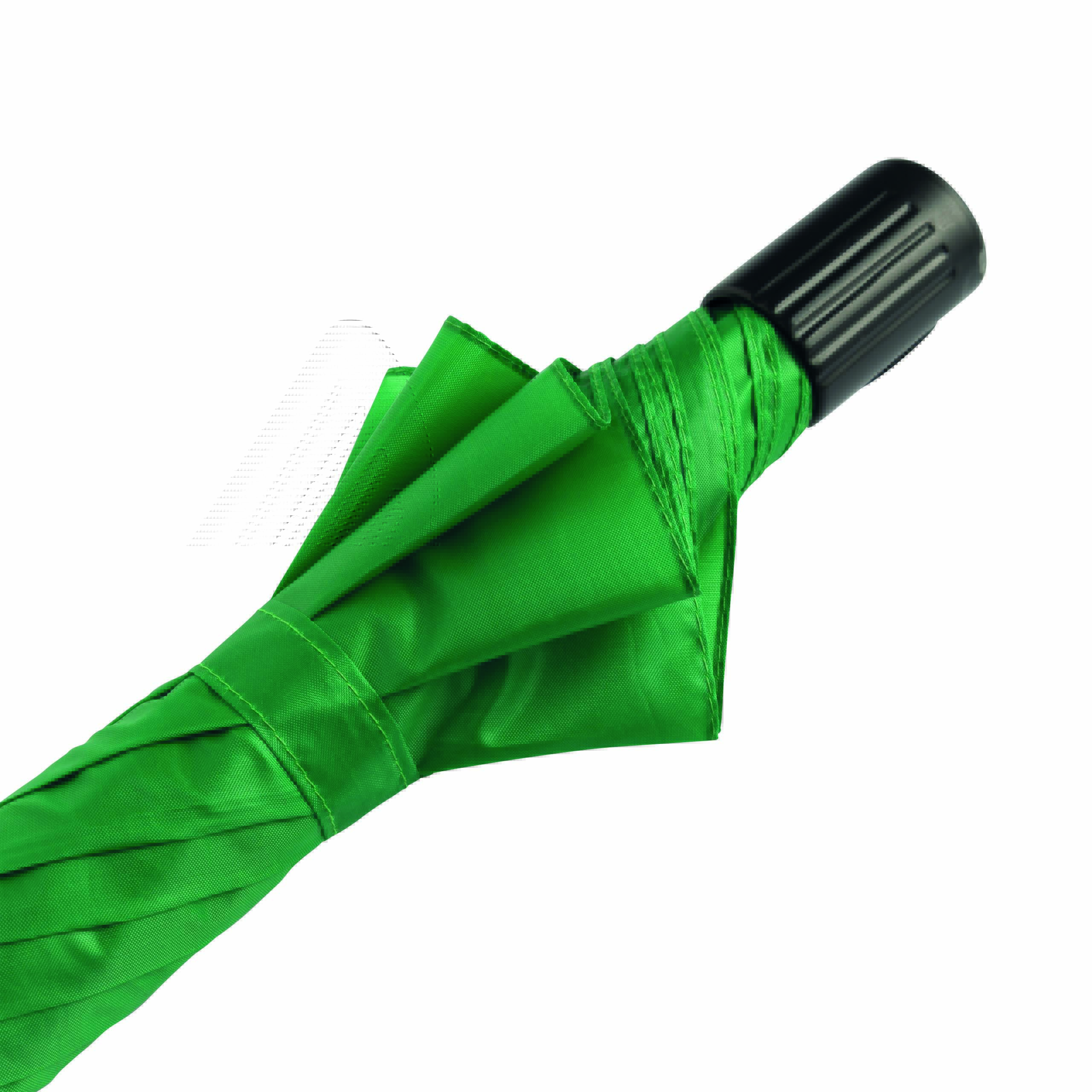 Parasol składany bez automatu REGULAR. Poszycie z poliestru, 2 x składana metalowa laska, metalowe szyny, czarny, plastikowy uchwyt ze sznureczkiem.