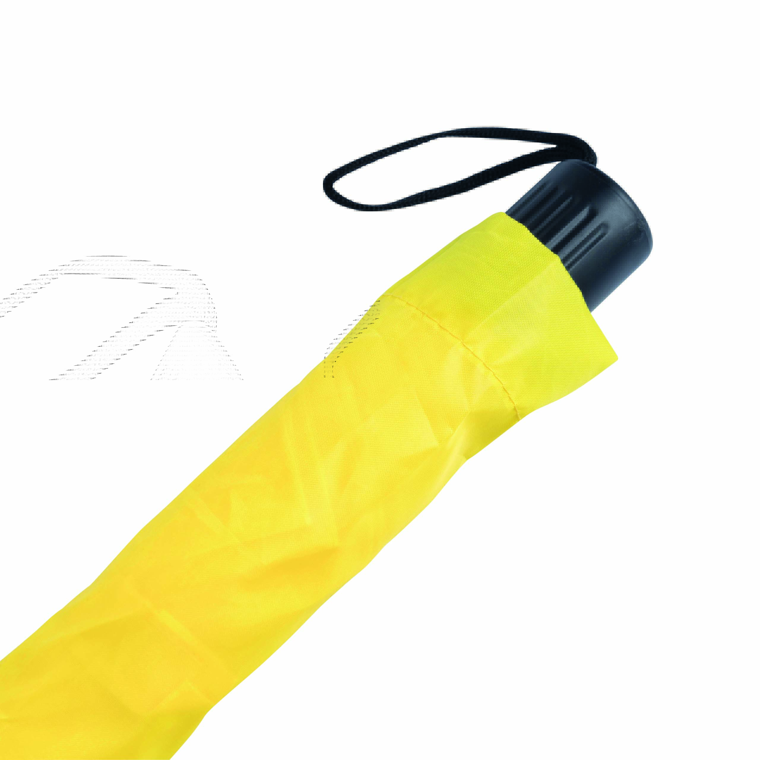 Parasol składany bez automatu REGULAR. Poszycie z poliestru, 2 x składana metalowa laska, metalowe szyny, czarny, plastikowy uchwyt ze sznureczkiem.