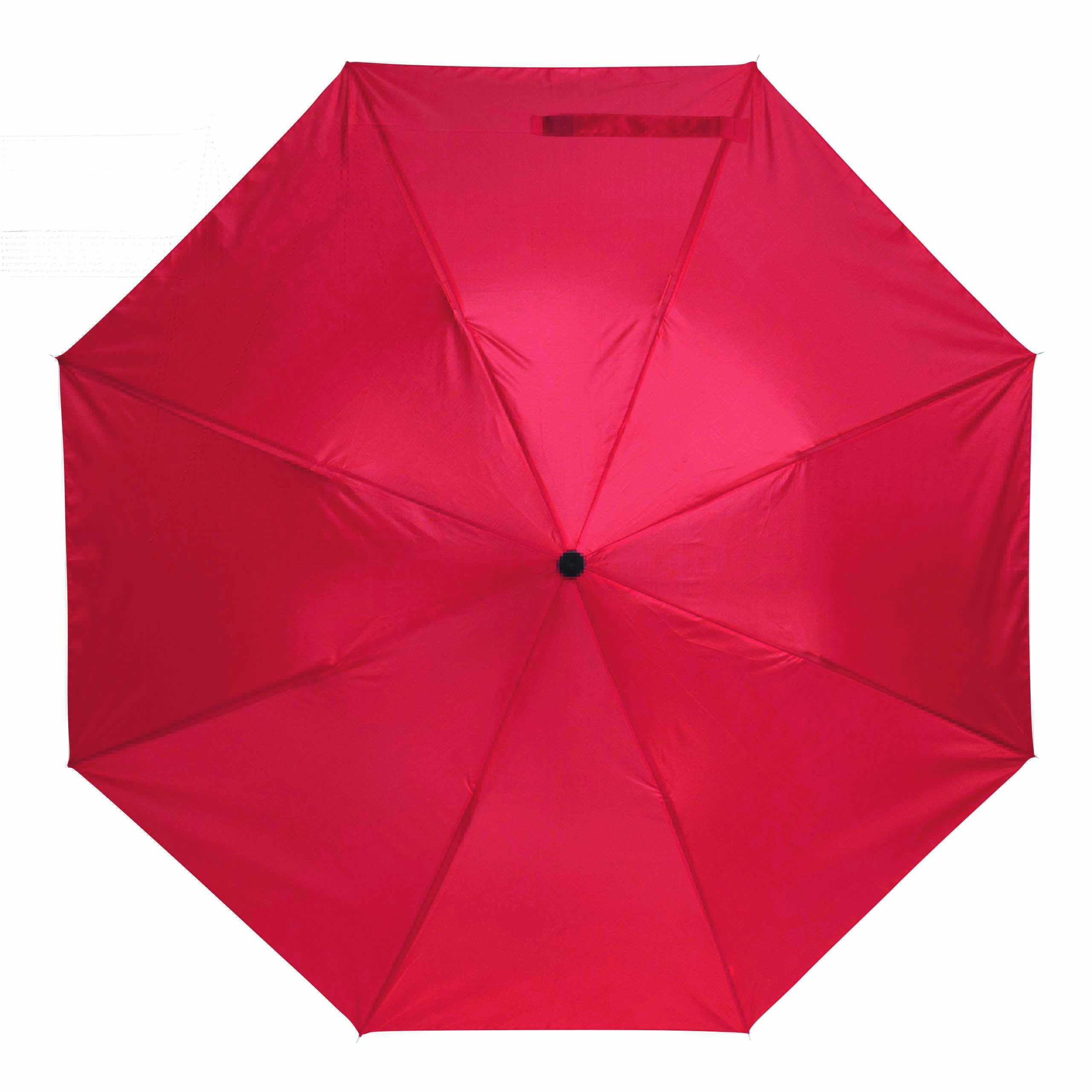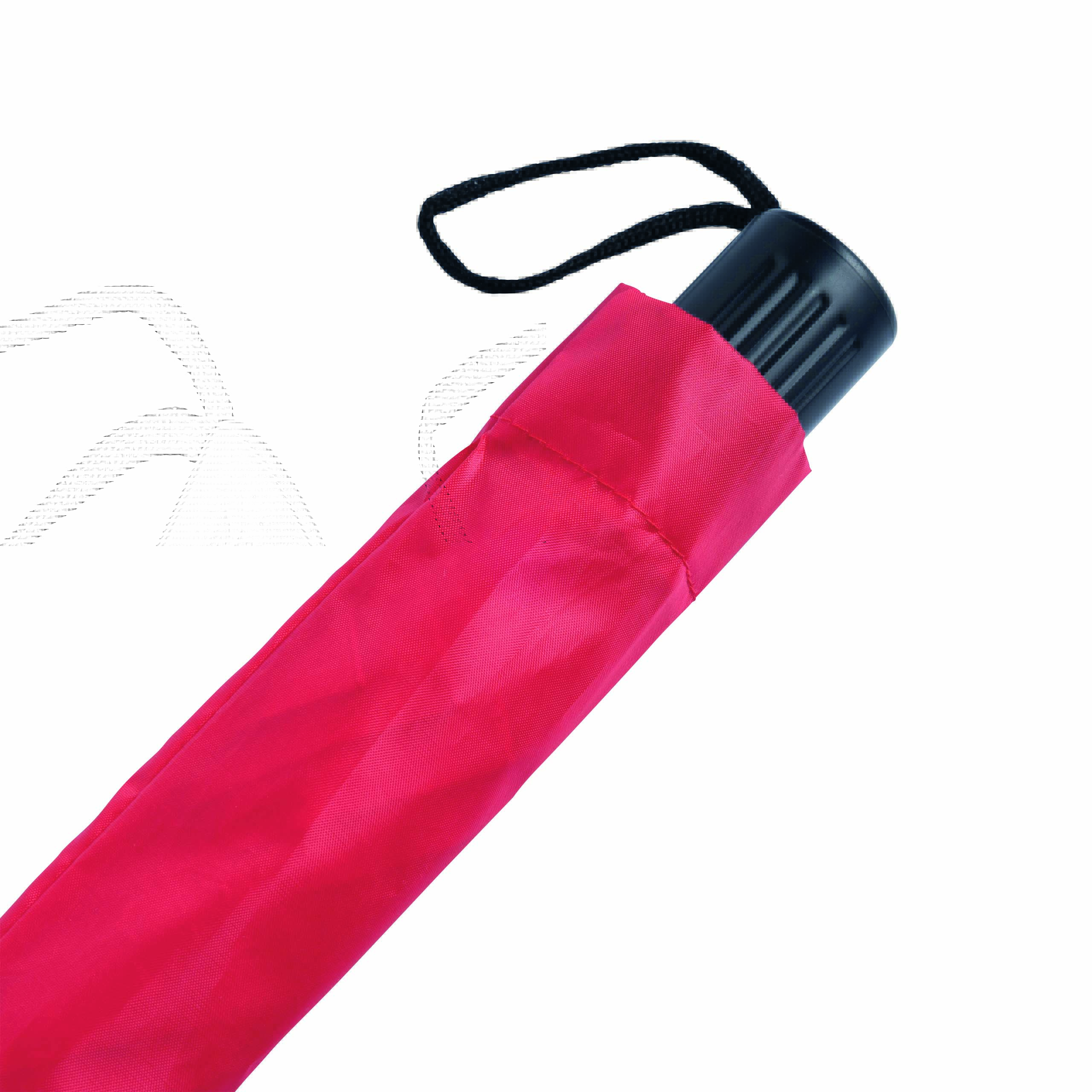 Parasol składany bez automatu REGULAR. Poszycie z poliestru, 2 x składana metalowa laska, metalowe szyny, czarny, plastikowy uchwyt ze sznureczkiem.
