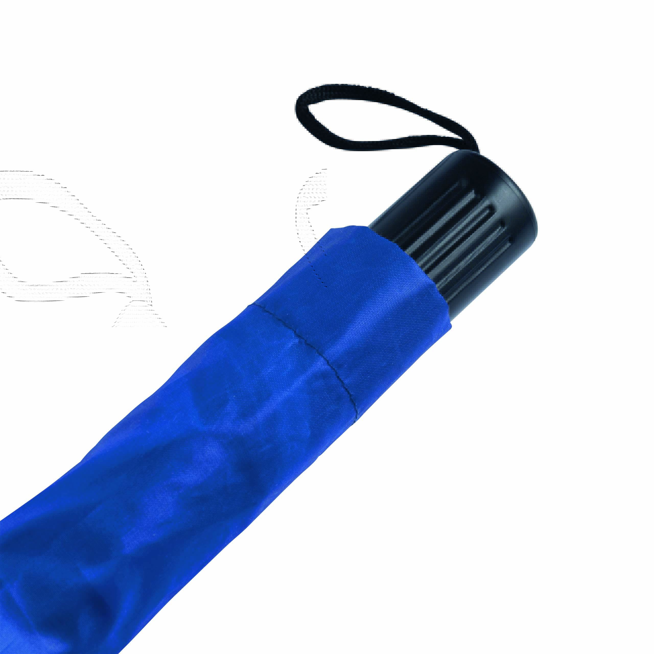Parasol składany bez automatu REGULAR. Poszycie z poliestru, 2 x składana metalowa laska, metalowe szyny, czarny, plastikowy uchwyt ze sznureczkiem.