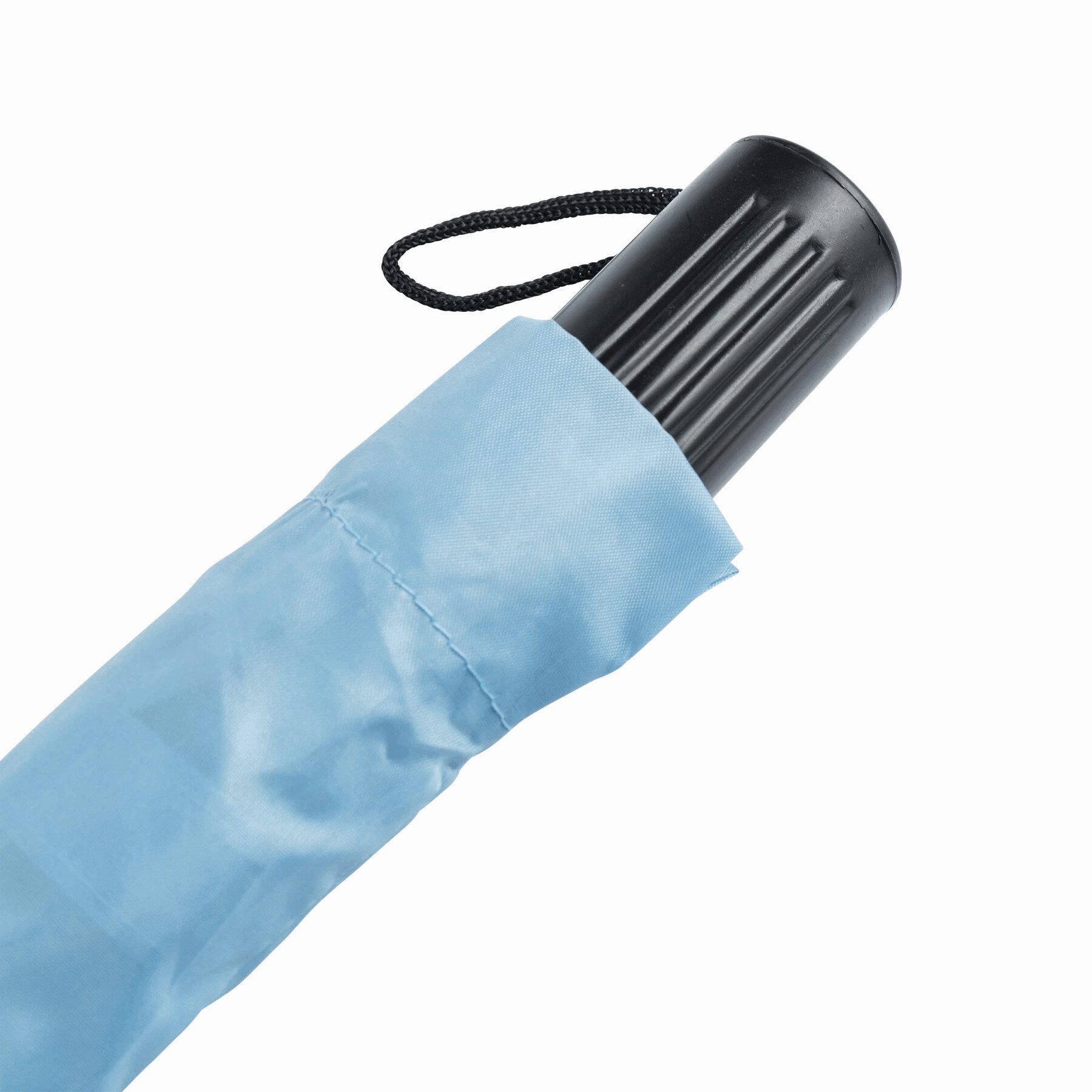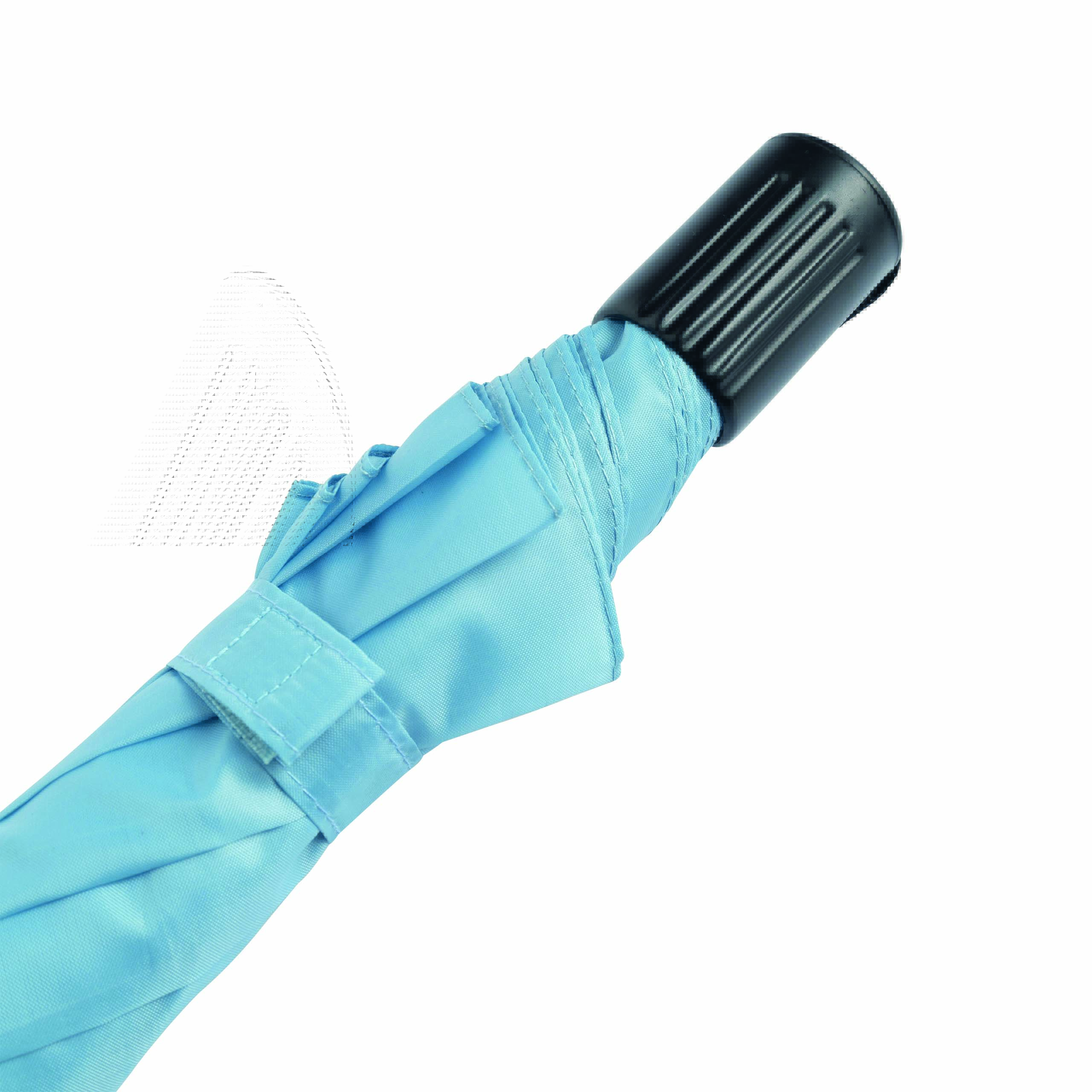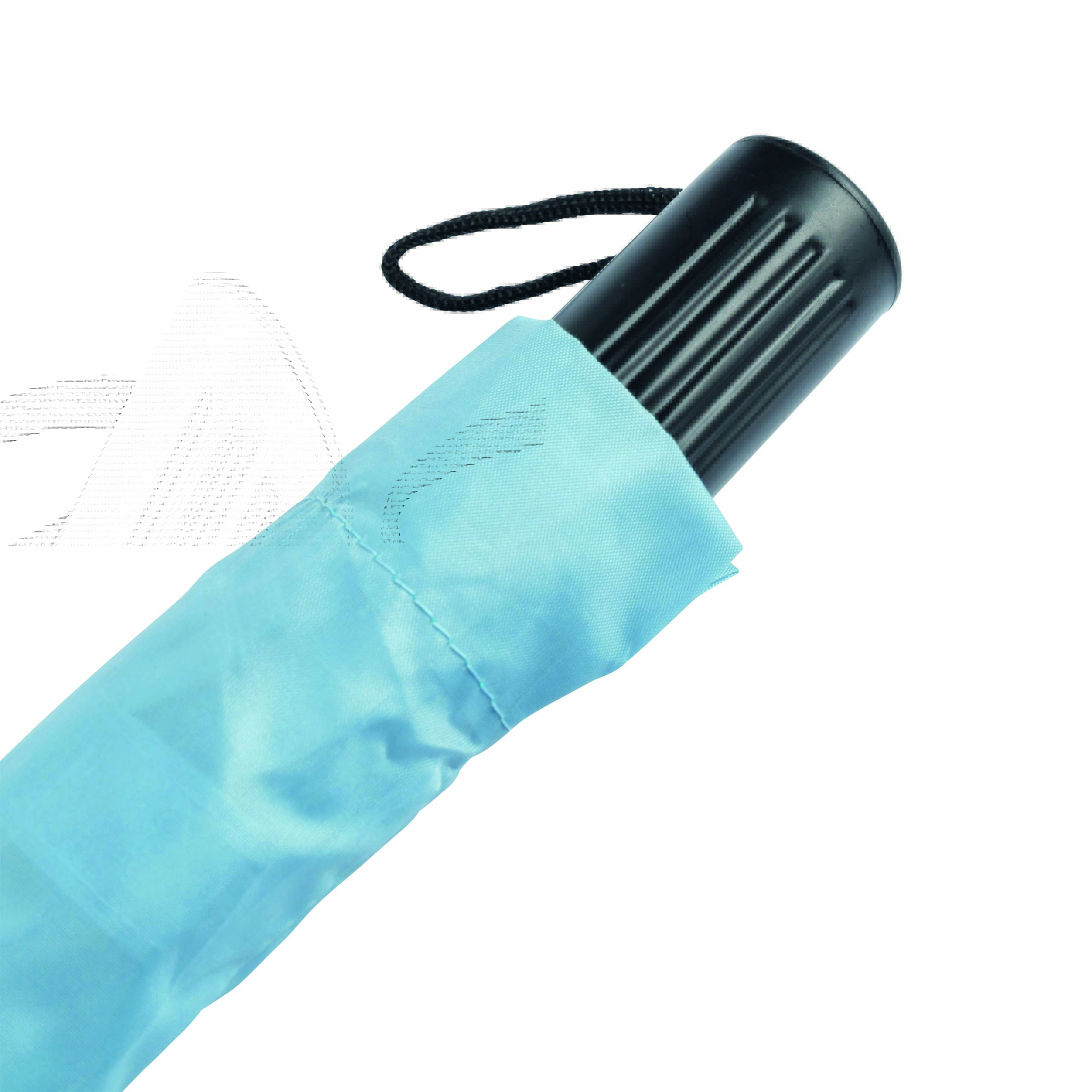 Parasol składany bez automatu REGULAR. Poszycie z poliestru, 2 x składana metalowa laska, metalowe szyny, czarny, plastikowy uchwyt ze sznureczkiem.